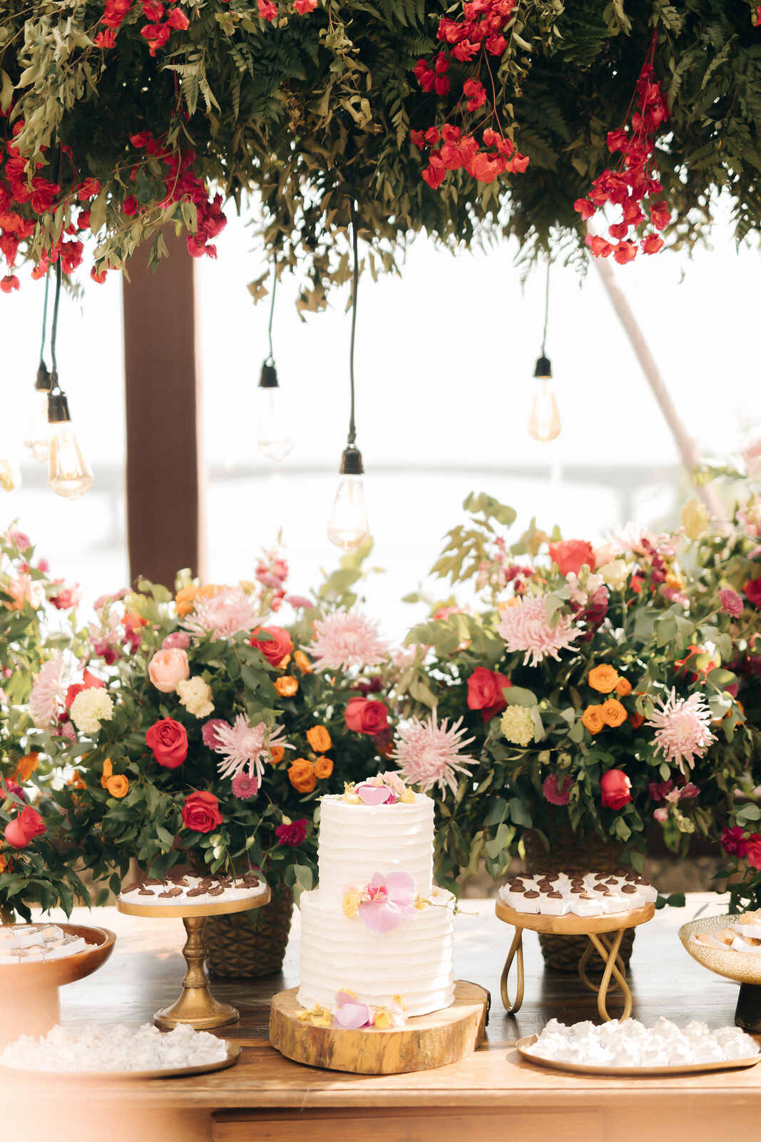 Quando falamos de casamento na praia, mesmo que não seja pé na areia, é normal pensar em flores e plantas tropicais.