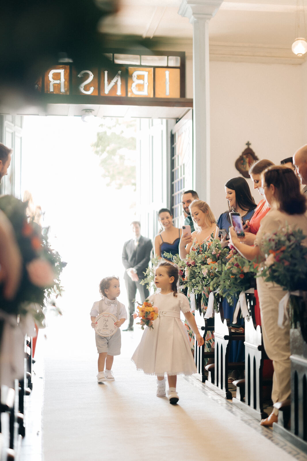Todos foram incríveis! Mas nosso afilhado levando as alianças foi inesquecível.”