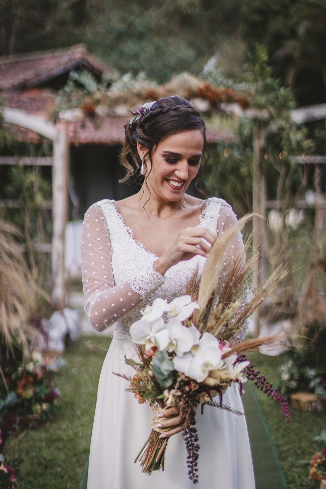 A decoração de arrancar suspiros seguiu o estilo rústico com bastante capim das pampas que deram um toque todo especial ao espaço. Os projetinhos DIY ficaram por conta da Camila, a mãe dela e a avô que fizeram as lembrancinhas.
