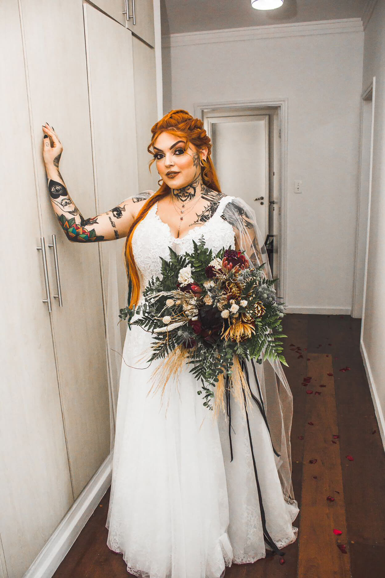 Sabemos que existem noivas de todos os estilos, romântica, clássica, boho…e alternativa, é claro! A Anne com certeza é uma delas e o seu casamento não poderia deixar de ter elementos que ela e o marido se identificam do estilo Viking.