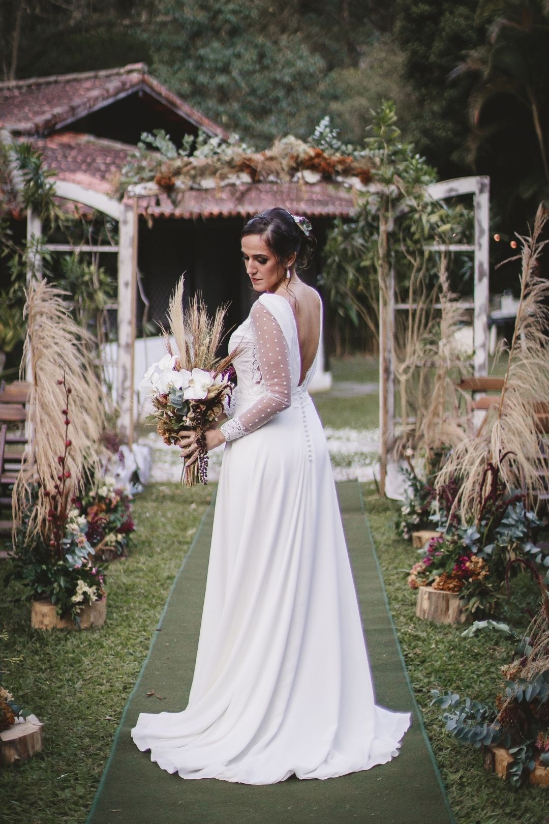 A decoração de arrancar suspiros seguiu o estilo rústico com bastante capim das pampas que deram um toque todo especial ao espaço. Os projetinhos DIY ficaram por conta da Camila, a mãe dela e a avô que fizeram as lembrancinhas.