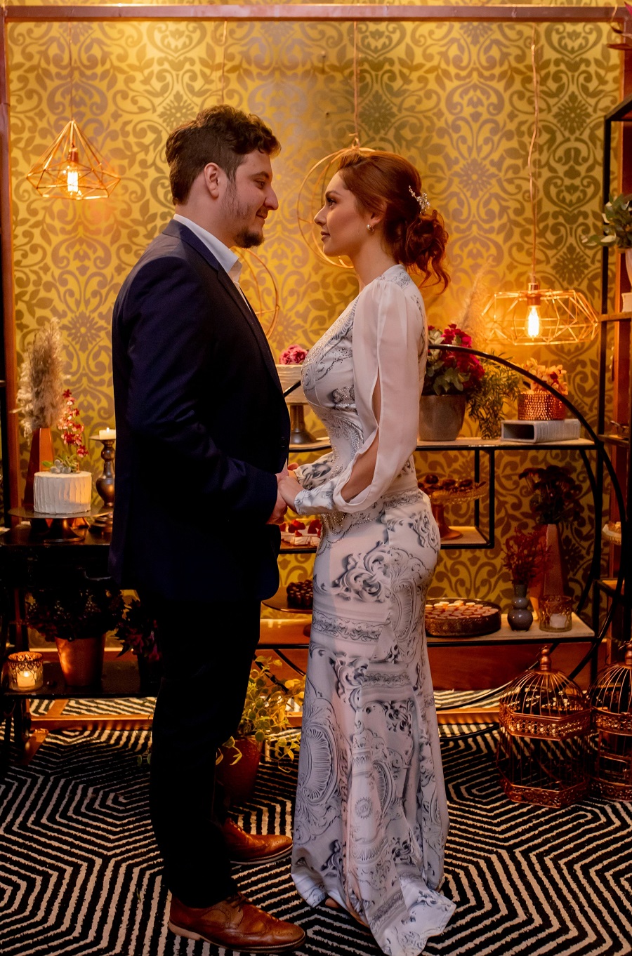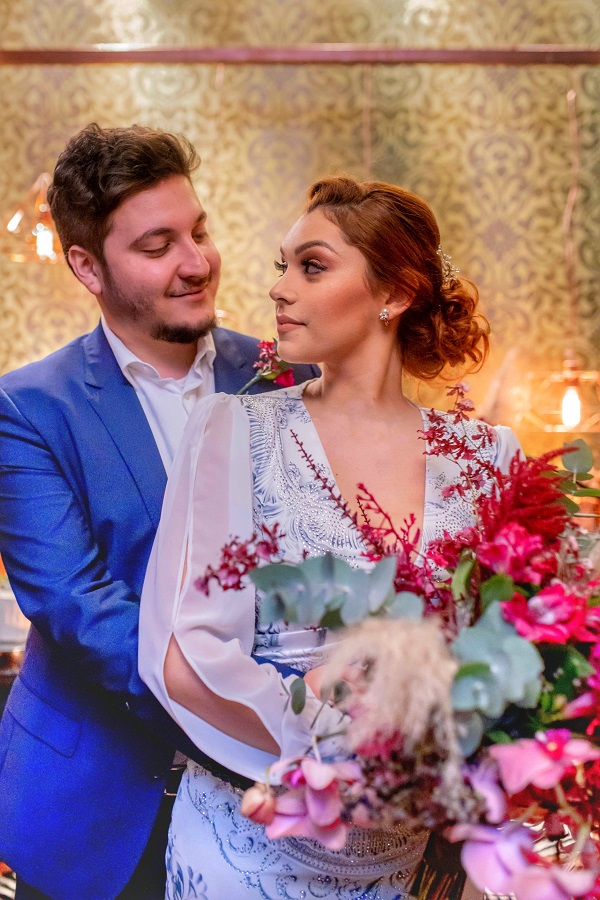 A Leticia sempre sonhou com um casamento de contos de fadas: grande, com um vestido branco e arranjos florais subindo pelas paredes, mas ao fazer a lista de convidados e ver que o número estava próximo dos 300, desistiram e mudaram os planos. “A princípio, um mini-wedding não me agradou muito e confesso que estava muito firme na minha decisão de “ou faço um casamento grande ou não faço nada”, mas é engraçado como amadurecemos essa ideia e passamos a valorizar a proposta de um casamento intimista.”
