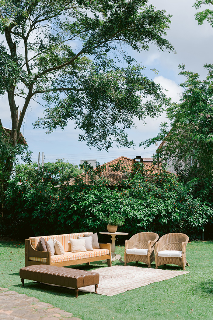 “O Pedro é produtor e cheio de ideias lindas já estava esperando um casamento bem singular, mas ele me surpreendeu, foi muito pessoal e a cara deles de um jeito muito criativo. As poltronas, cadeiras e estofados para os convidados assistirem a cerimônia foi muito legal e a vibe do dia foi inesquecível”, contou Ítalo.
