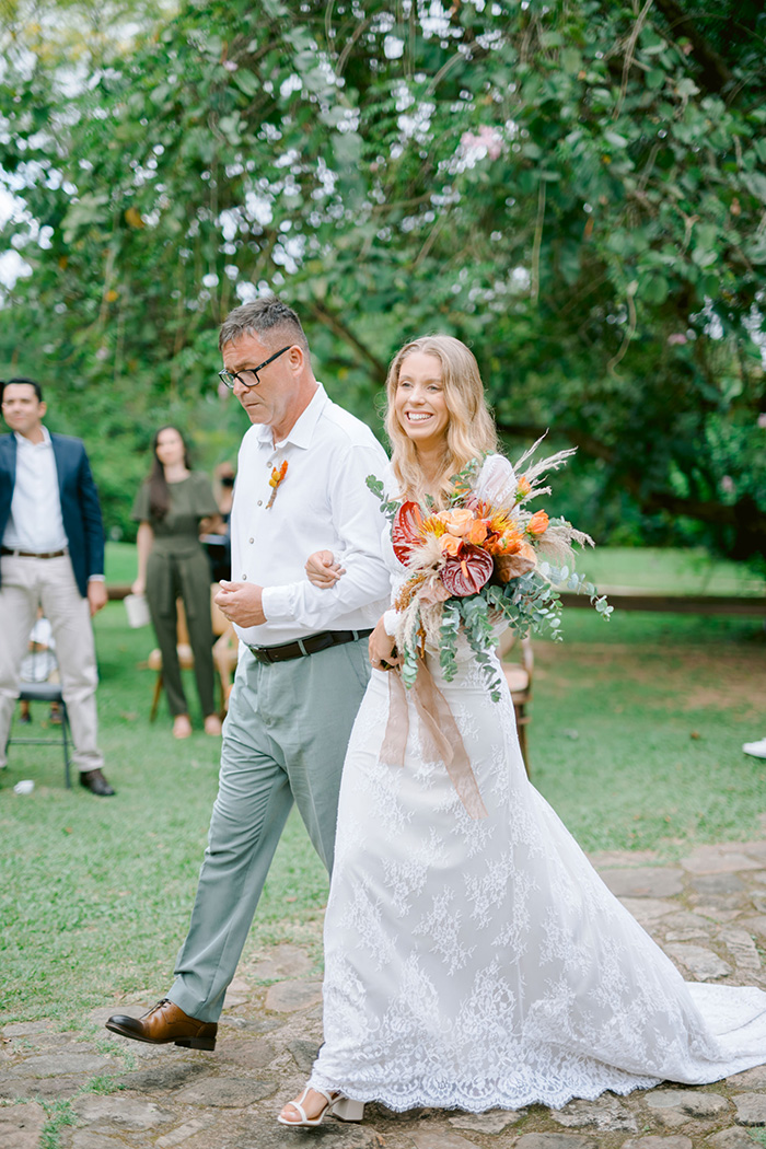“Decidimos casar em uma cerimônia íntima de 50 convidados, apenas com a família e os padrinhos. Mesmo com o número de convidados bem reduzido, mantivemos o budget inicial, sendo assim, decidimos alugar a chácara do casamento o final de semana inteiro para curtir o momento com a família e amigos”.