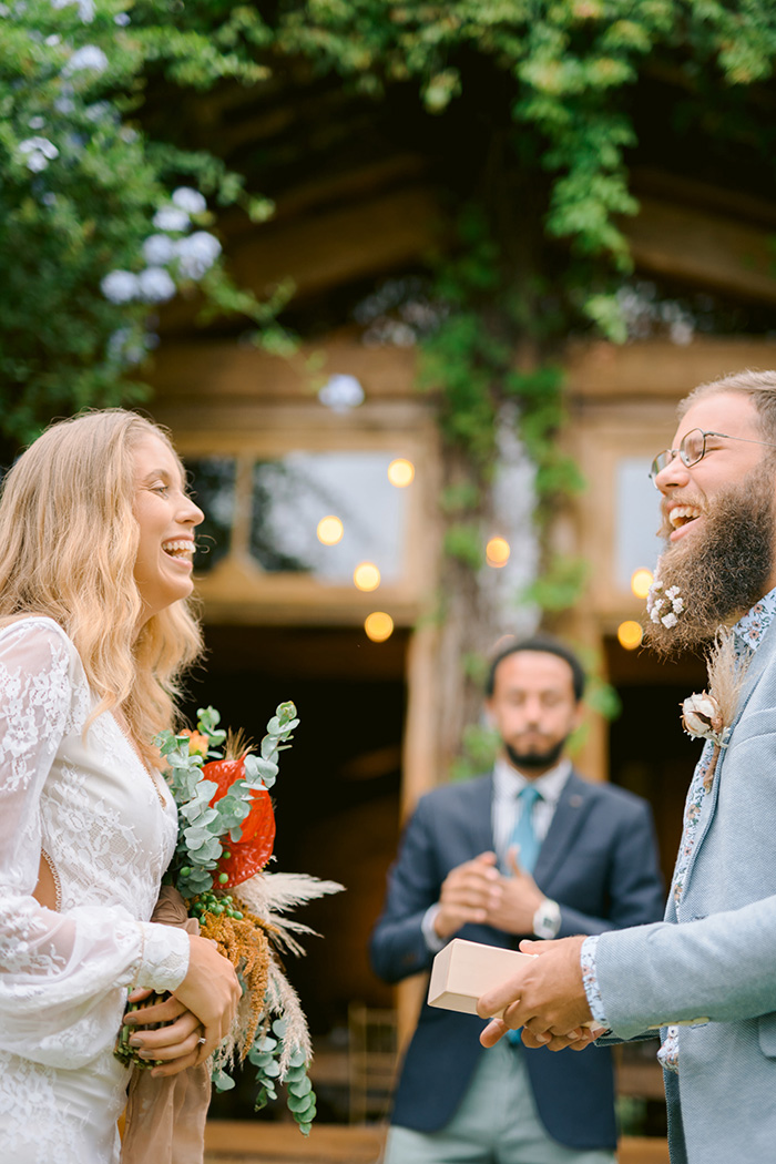 “Ter passado o final de semana inteiro com nossa família e amigos transformou o clima do nosso casamento, não tivemos que seguir um roteiro de ir cumprimentando todo mundo de mesa em mesa, porque já estávamos juntos desde sexta, ficamos bem livres e conseguimos curtir muito o nosso dia”.