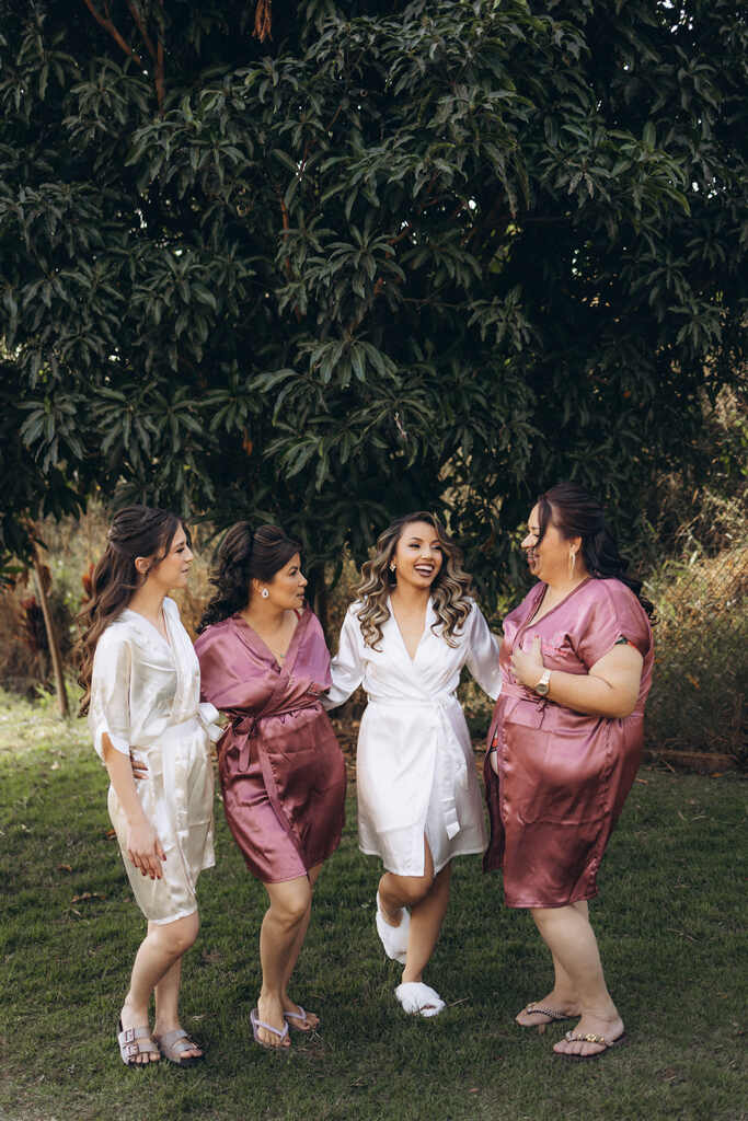 Os padrinhos terem dançado com o noivo na entrada, e a entrada das madrinhas em formato de demoiselles.”