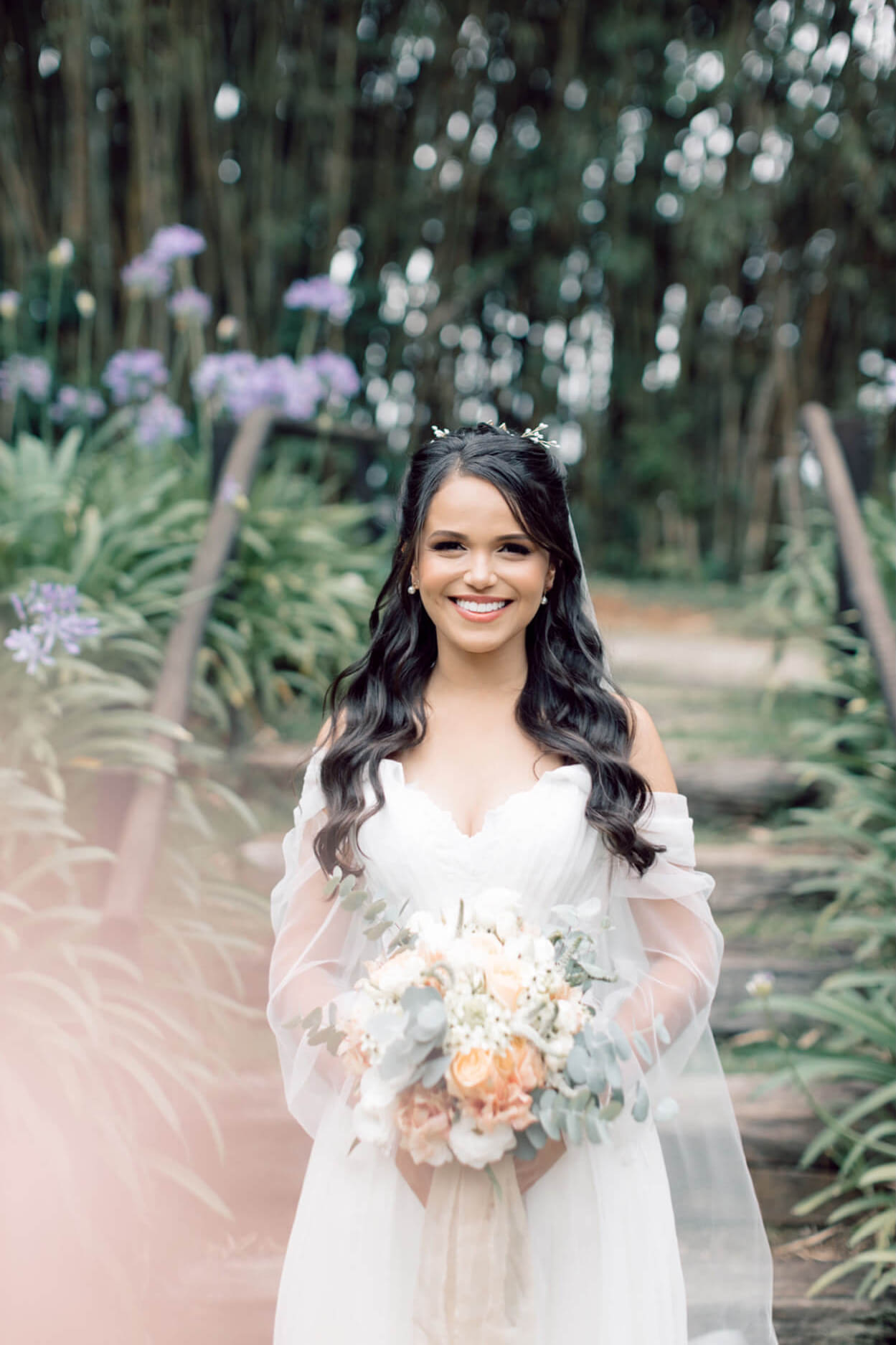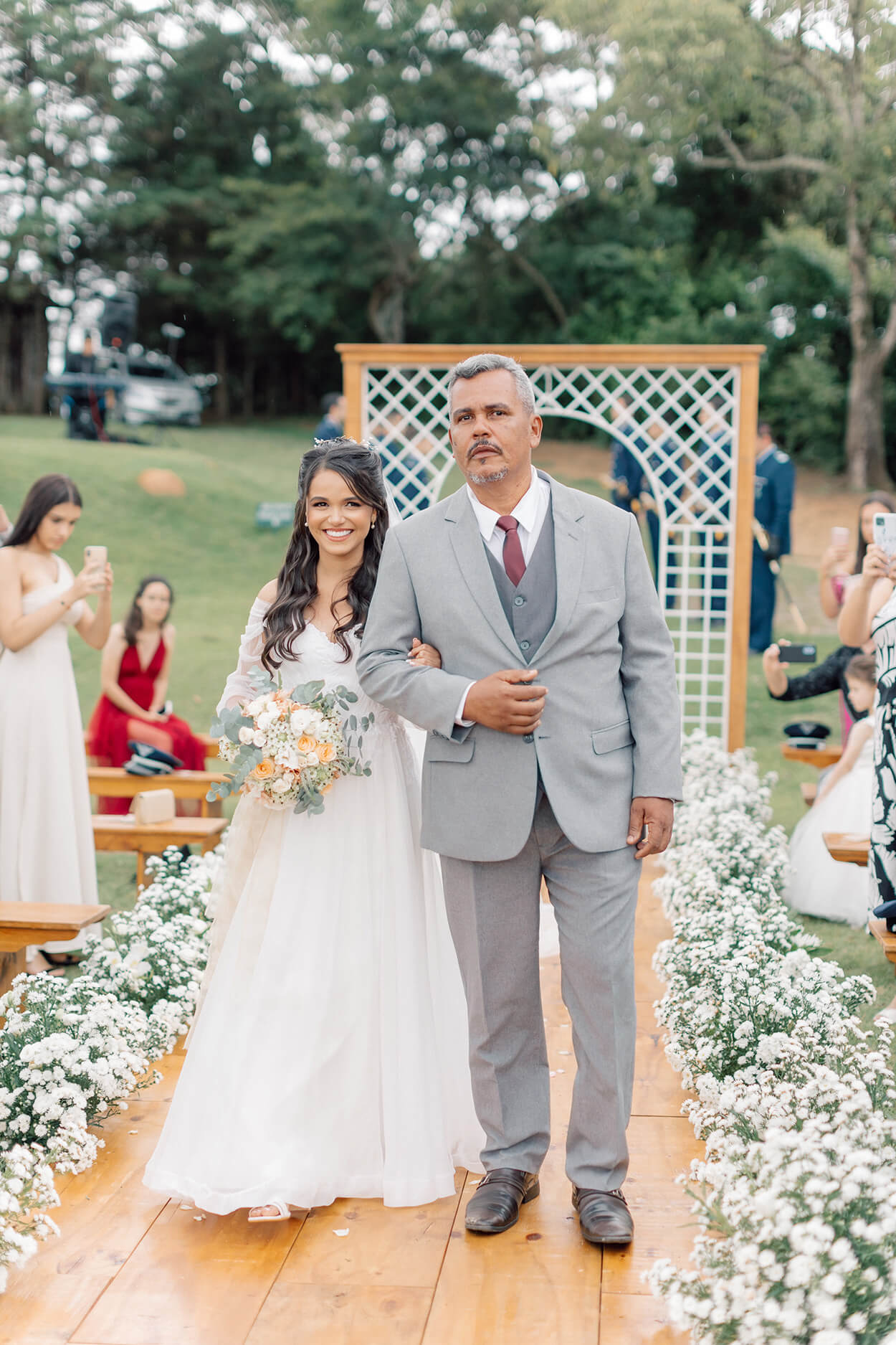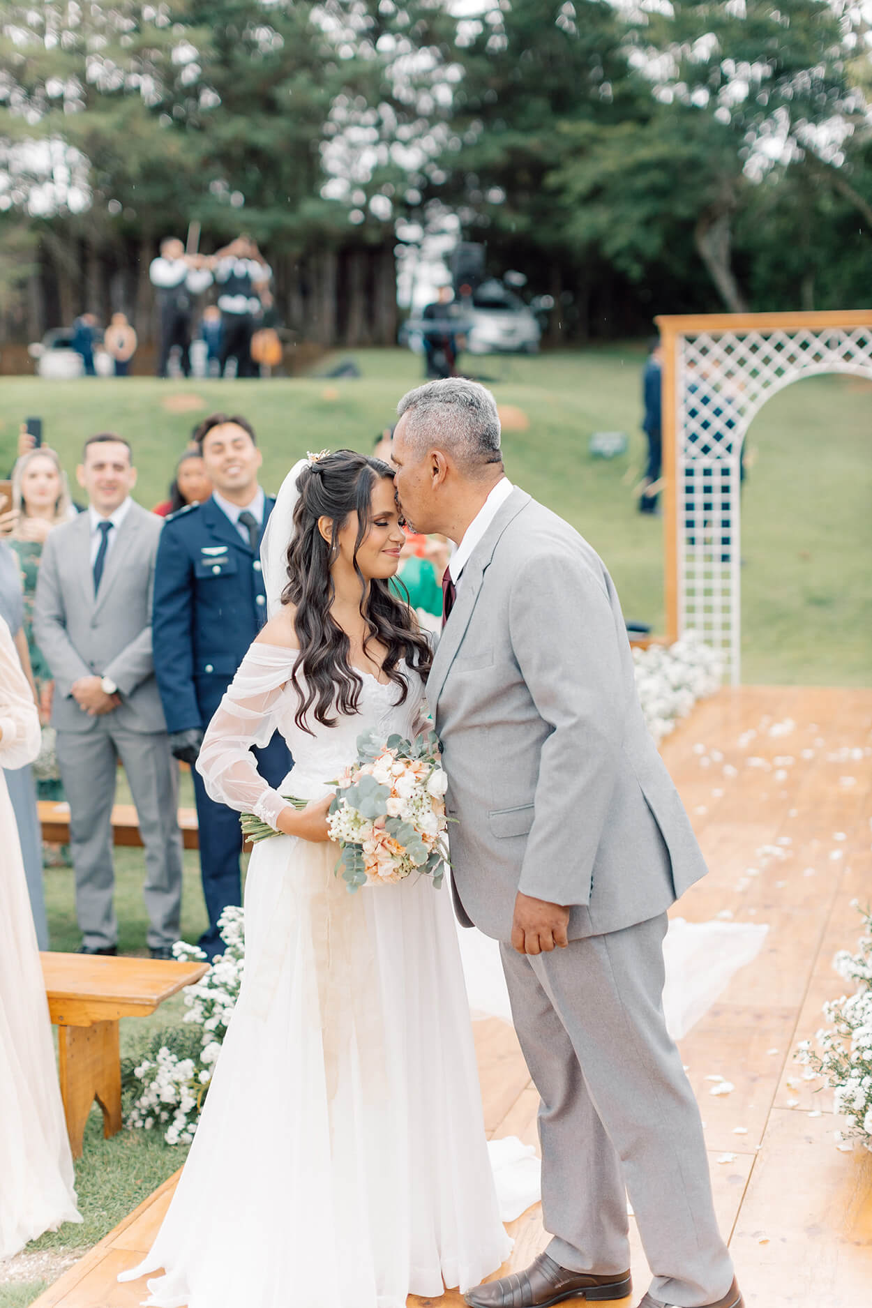 “Fui até o altar, vi meu noivo com lágrimas nos olhos, finalmente estava acontecendo, depois de 4 anos de espera, li meus votos com uma leve garoa caindo em meu livro, parecia até cena de filme. Naquele momento eu chorei de gratidão porque tudo foi além do que imaginei.