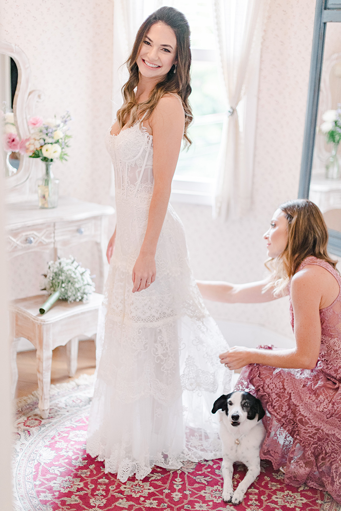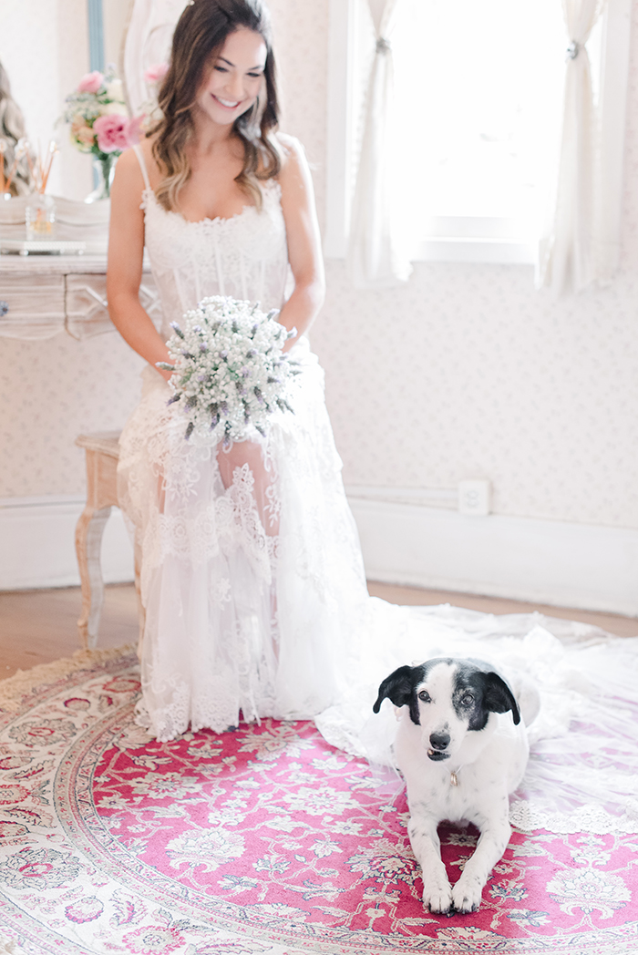 Sem dúvida era algo que sempre sonhei. Nina levou as alianças e deitou na cauda do meu vestido durante a cerimonia! Um amor!”