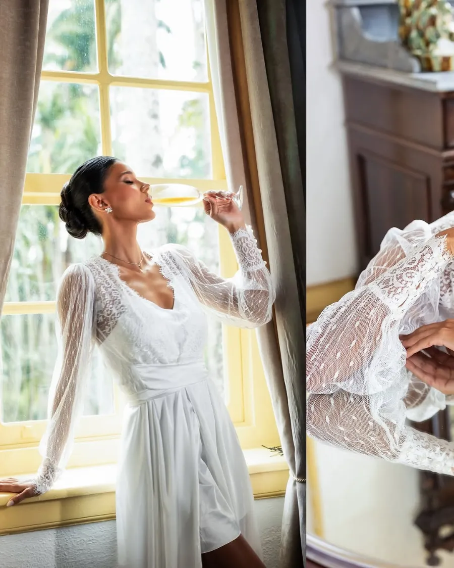 “Eu sempre pensei em um vestido clássico, elegante e atemporal. Mas também queria que trouxesse a minha essência e a nossa história”