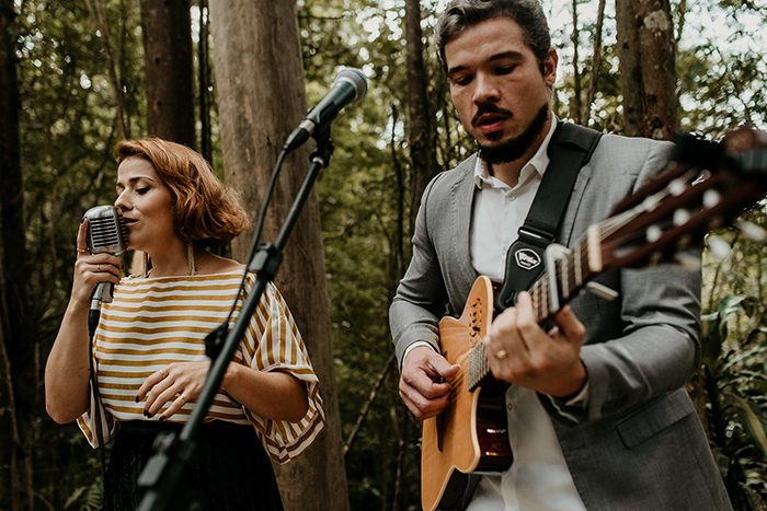 Da mesma forma, a voz e violão também super combinam com casamentos delicados, leves e aconchegantes, como em um casamento em casa, por exemplo. Não é à toa que essa formação musical é a queridinha dos noivos!