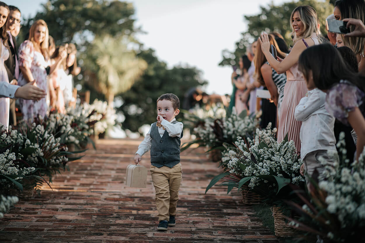 O noivo investiu em um clássico terno preto de três peças para traduzir a sua formalidade. E, nas próximas fotos você poderá perceber que os pais dos noivos e os padrinhos também seguiram esse estilo.