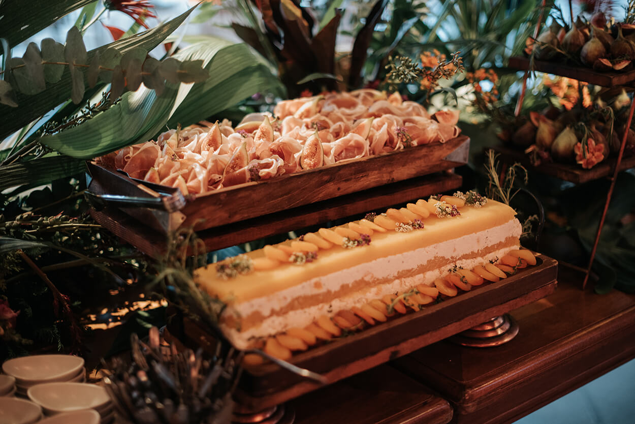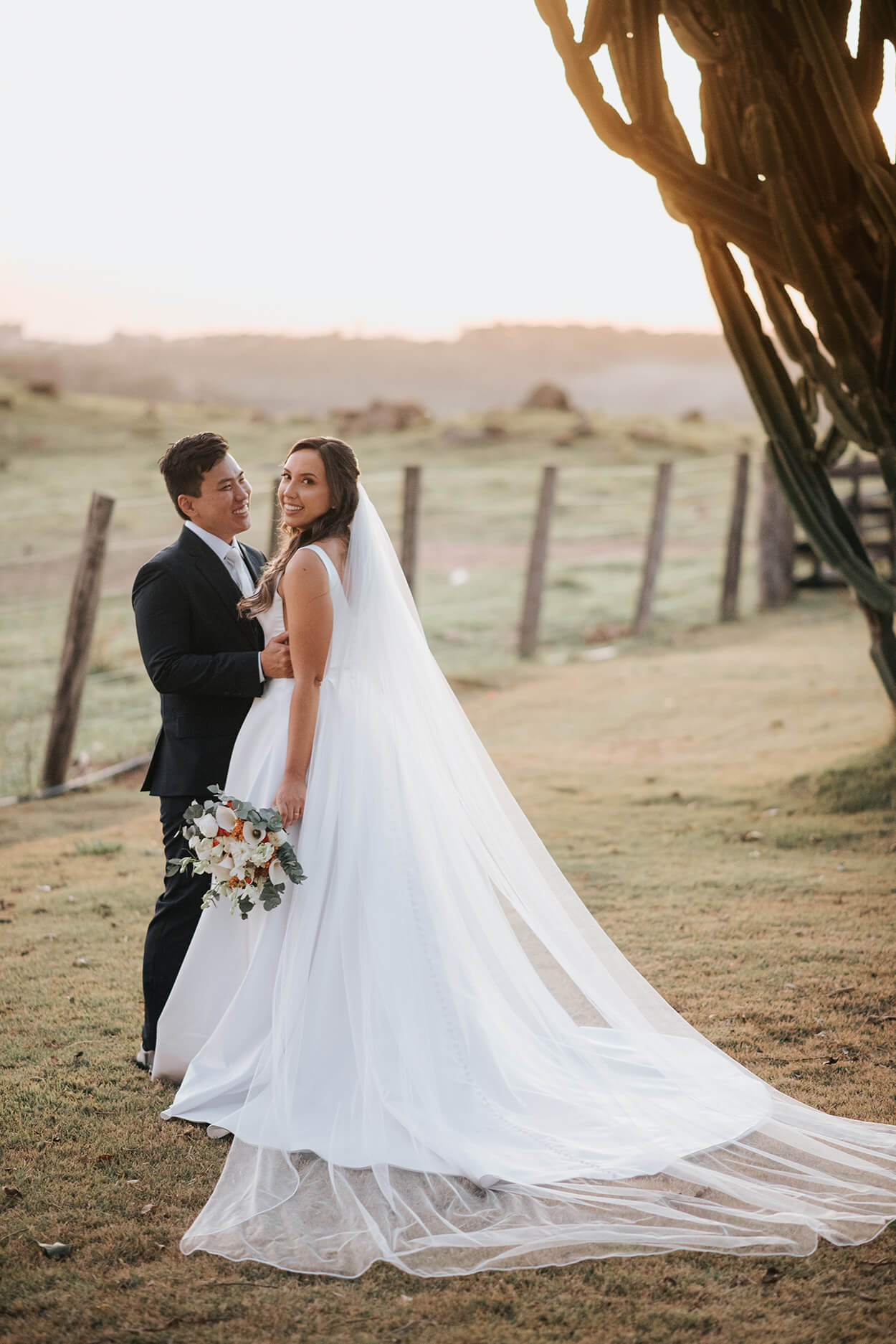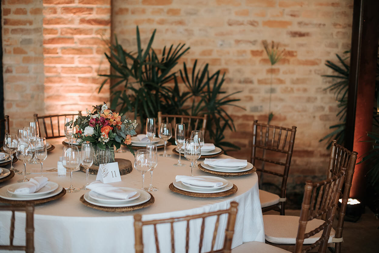 Julia sabia bem o que queria: um vestido elegante e volumoso. O decote quadrado tem um charme próprio, além disso, é uma ótima opção para noivas que desejam valorizar o colo sem abrir mão de uma boa sustentação para os seios. Por outro lado, o buquê reúne o frescor com os ramos de eucalipto, a alegria com as flores laranjas e finaliza com toda a graciosidade do copo de leite.