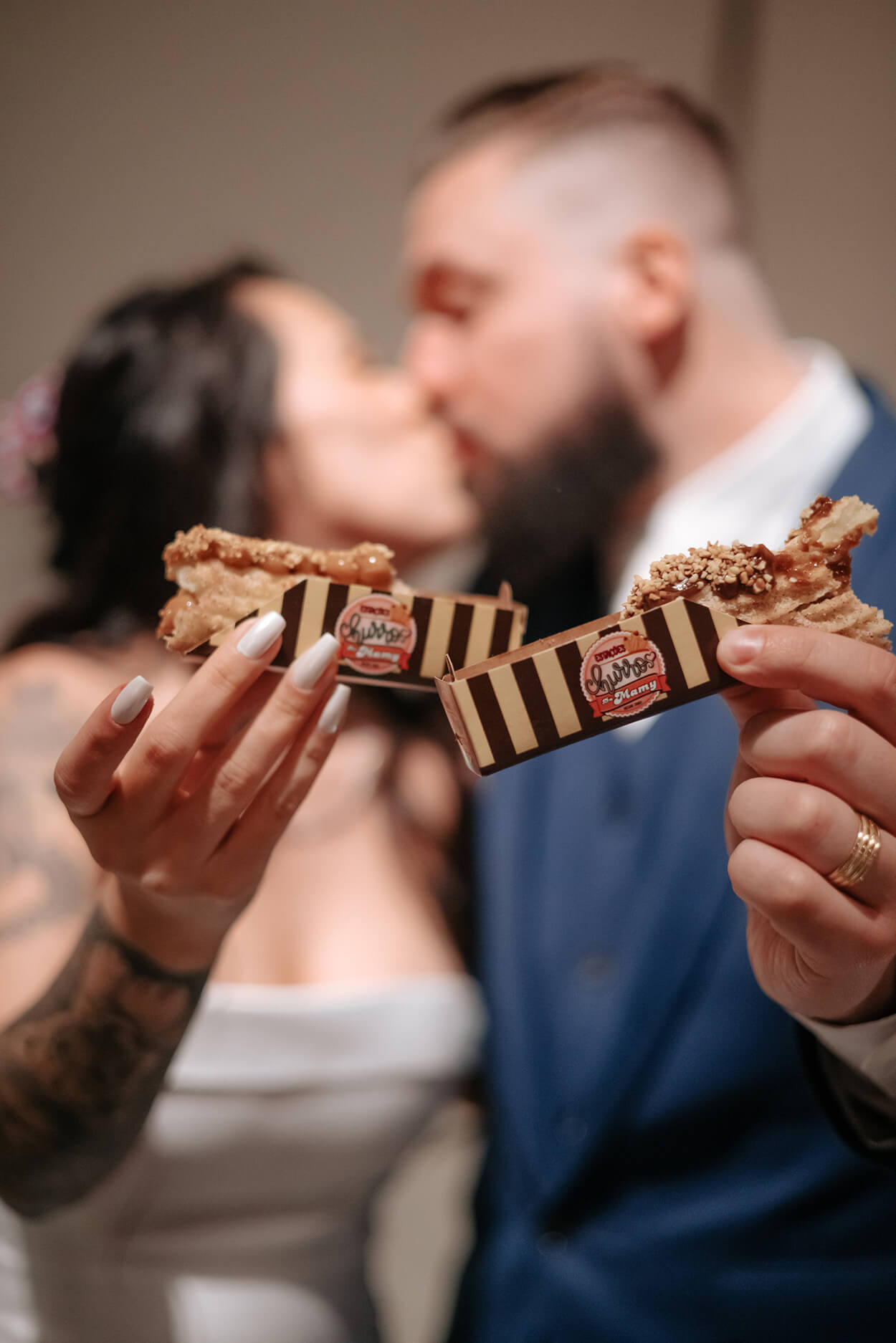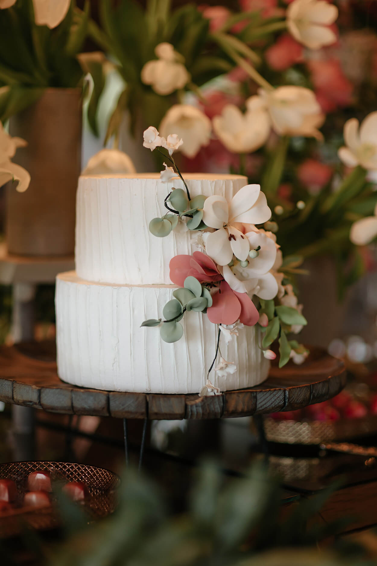 Olha, teve de tudo um pouco: altar diferente e romântico, mesa posta na cor marsala, espaço kids e carrinhos deliciosos com brigadeiro de colher, churros e sorvete com gostinho de infância.