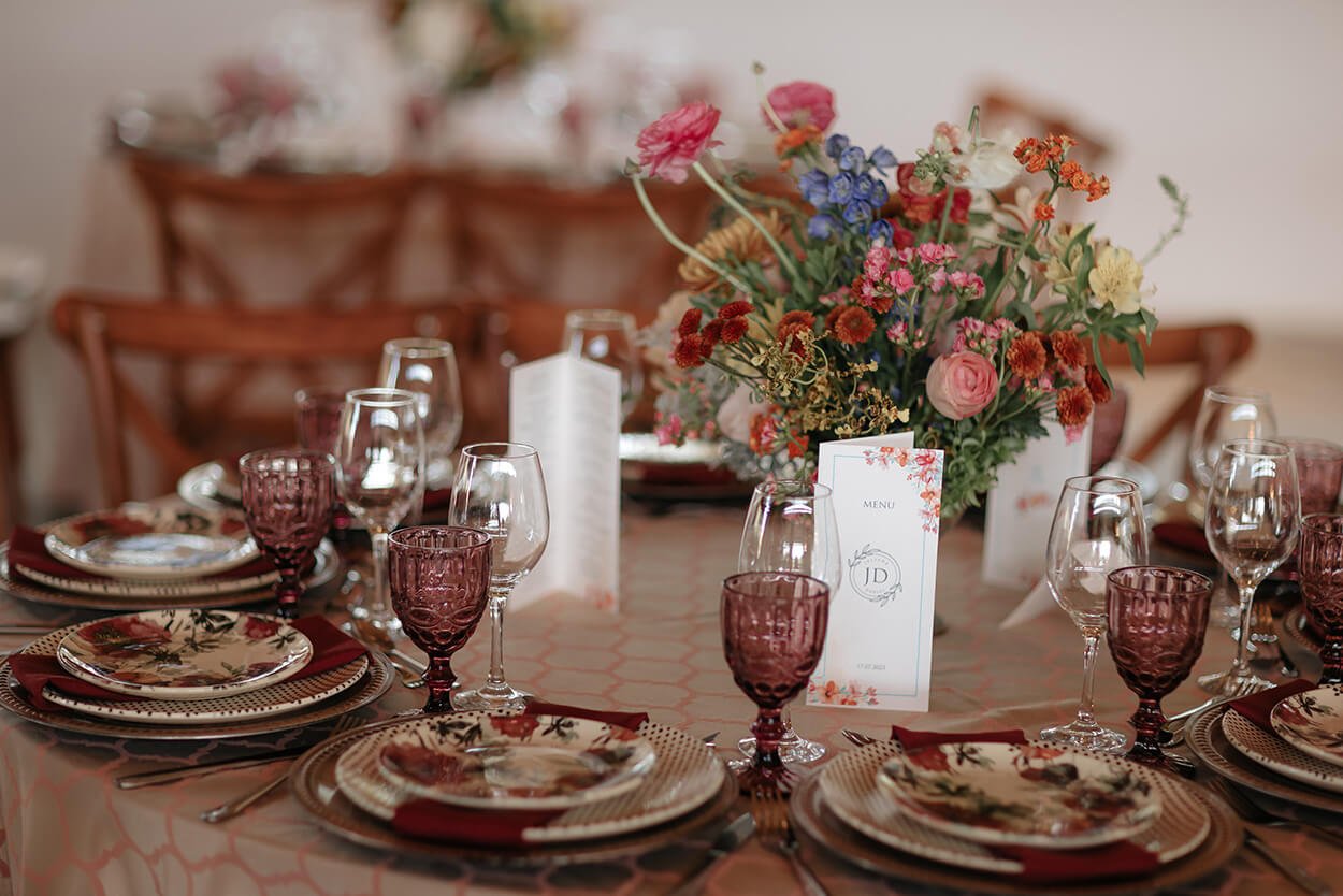 Antes de definir um estilo para o casamento, o casal queria que a festa tivesse um clima envolvente e intimista no campo. Assim, o projeto ganhou ares românticos mesclados com a essência rústica do local.