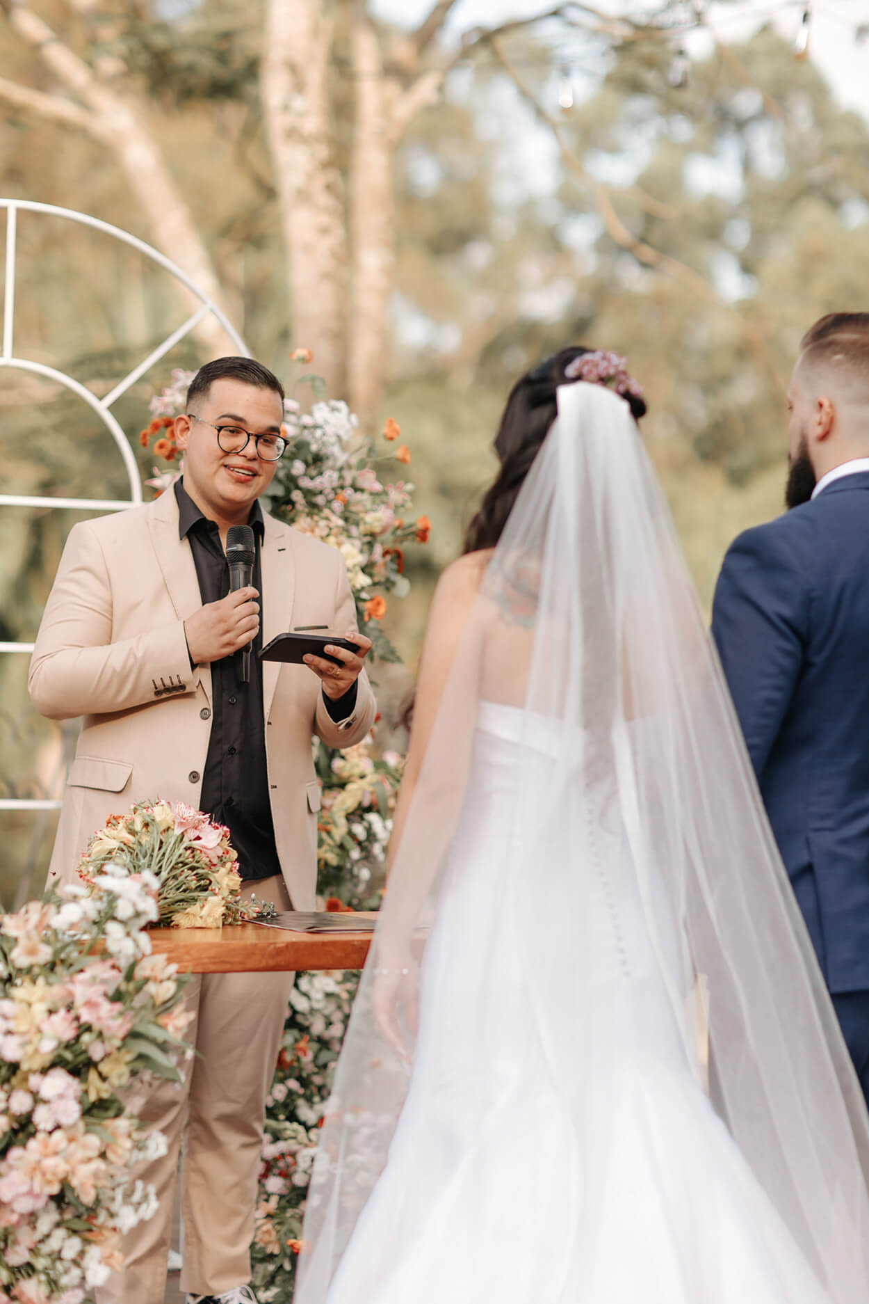 Agora veja um trechinho dos votos da noiva.“Obrigada por acreditar em nós. Eu não tenho dúvidas que você é o amor da minha vida porque é assim que Deus faz: basta confir, detalhar os nossos sonhos para ele.”
