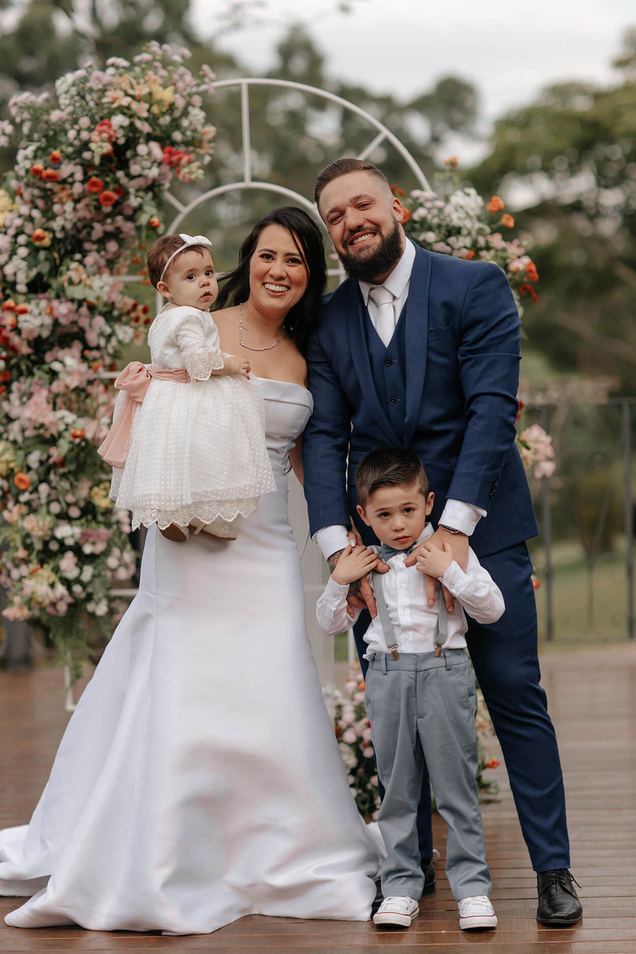 E do noivo. “Queria te agradecer pela esposa e pela mãe que você se tornou. Nem nos meus melhores sonhos. Eu nunca fui uma pessoa ambiciosa, nunca pedi muito pra Deus, mas ele me deu você, ele me deu uma família linda. Obrigado.”