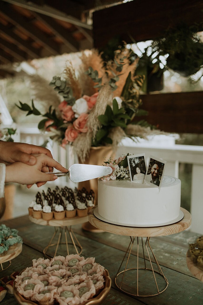 A ideia era um casamento sem muitos protocolos, onde nossos convidados aproveitassem aquele lugar e momento conosco. Fizemos um café da tarde com coquetel de bebidas que combinaram com o local.”