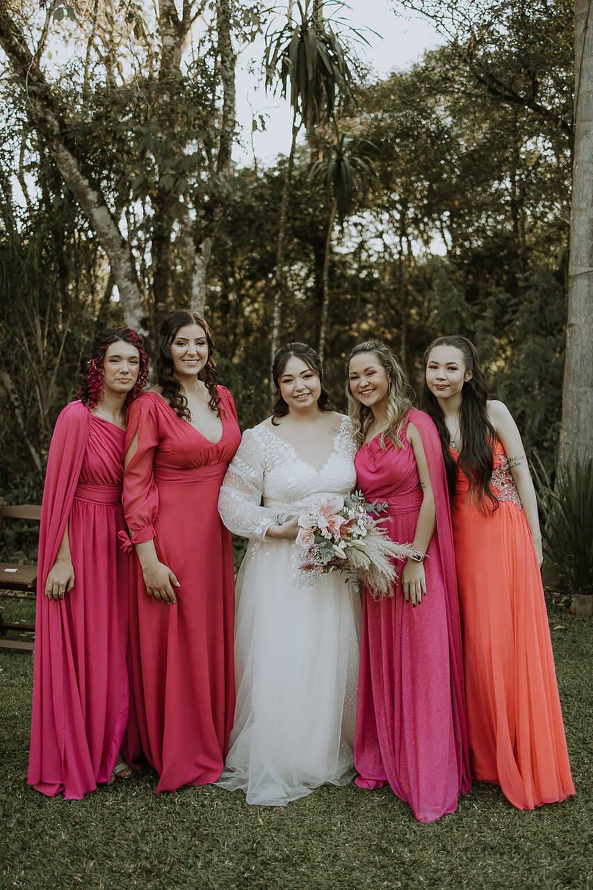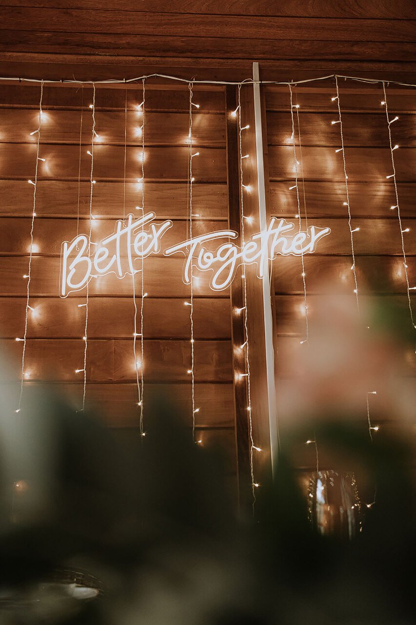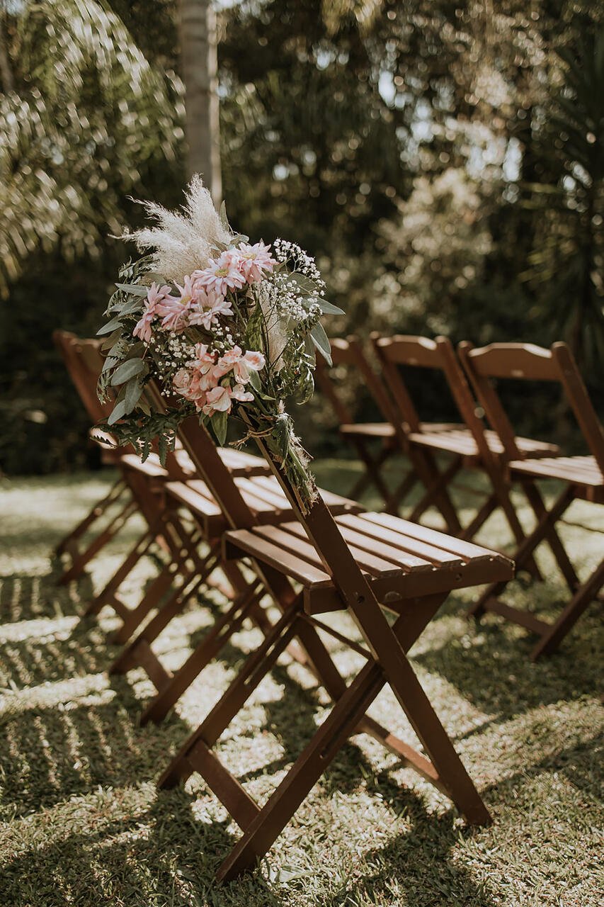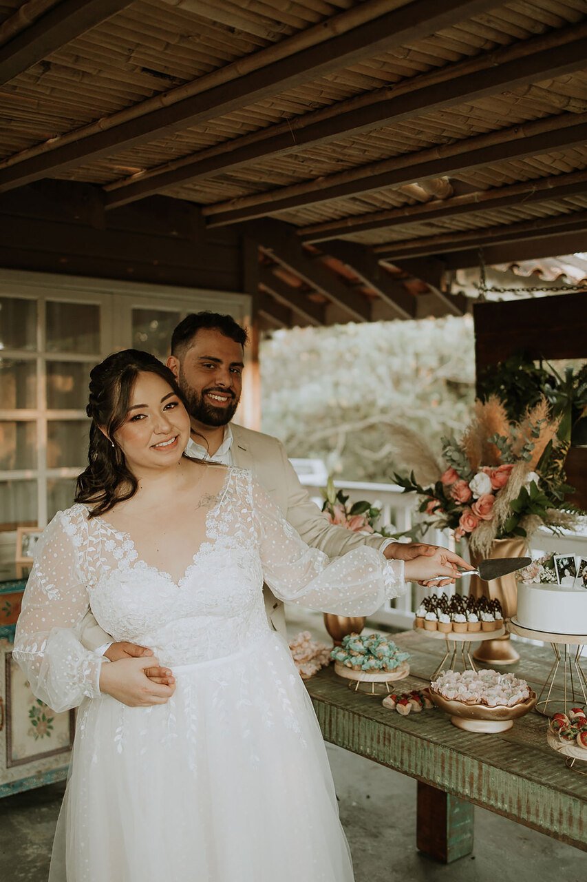 Buscamos realizar um casamento dos nossos sonhos, que era uma pegada americana, casando no jardim de casa, então achamos o lugar perfeito e todo resto foi se encaixando.