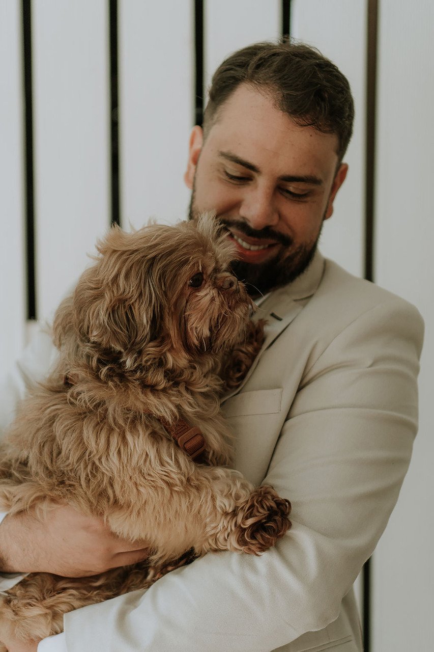 “Luís entrou com nosso cachorrinho que amamos demais, é como um filho para nós. Ninguém esperava por isso porque não contamos. Nossa ordem do cortejo não foi tradicional e ousamos em fazer algo que fosse a nossa cara.