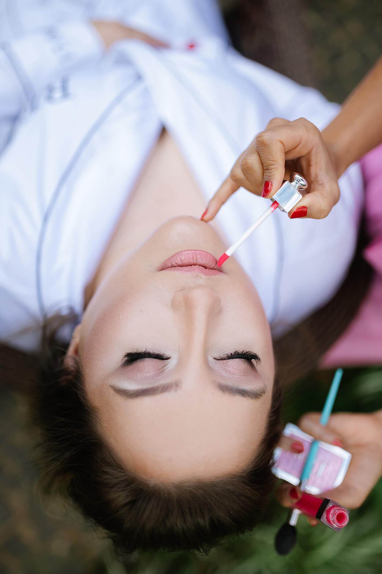 A Renata escolheu uma make mais leve para harmonizar com o seu visual potente e colorido. Aliás, essa grinalda com flores em Viva Magenta (a cor de 2023) é perfeita para quem quer usar a tendência só que de modo mais discreto no look.