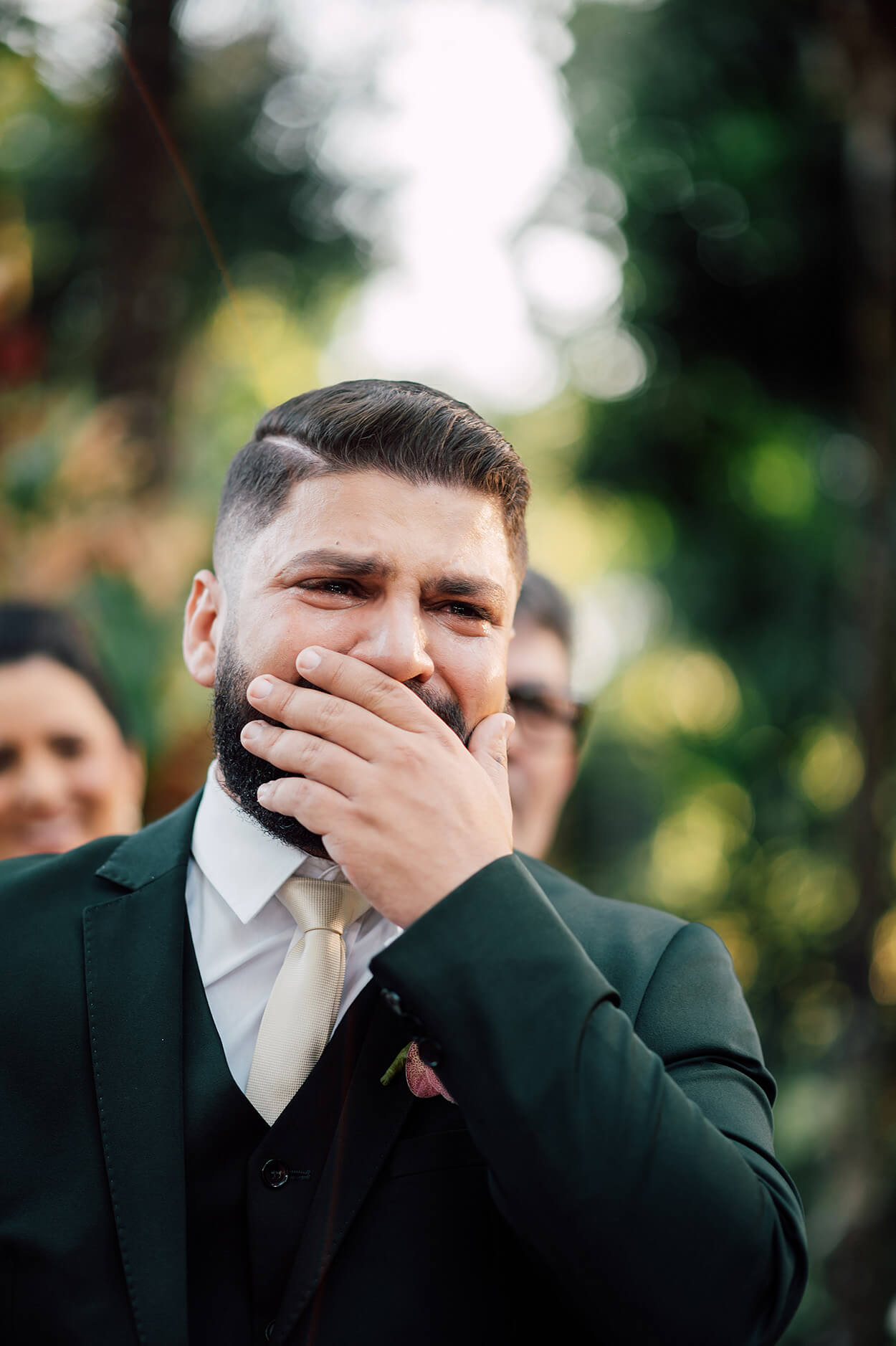 Como está estampado no rosto do noivo, a cerimônia foi tocante e ainda contou com um momento inusitado. O Fernando quase beijou a noiva quando ela chegou no altar, haha!