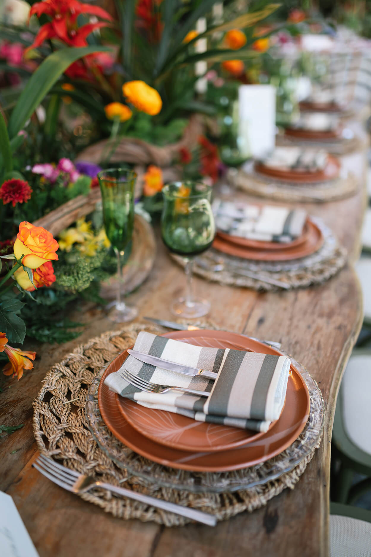 Esse casamento teve como essência transmitir a alegria e encanto que somente um jardim pode nos oferecer. Assim, vemos um mix de flores e plantas de encher os olhos e uma mesa posta digna de Pinterest.