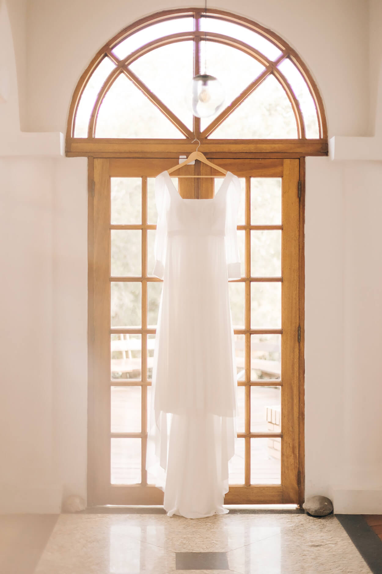 É óbvio que a Ana também iria incorporar o minimalismo no seu vestido! O modelo ficou com o caimento perfeito em seu corpo, e o decote quadrado, além de dar aquele ar de princesa, também valorizou o seu busto e colo. Por fim, ela não queria deixar as suas amigas esperando e organizou um first look cheio de emoção.