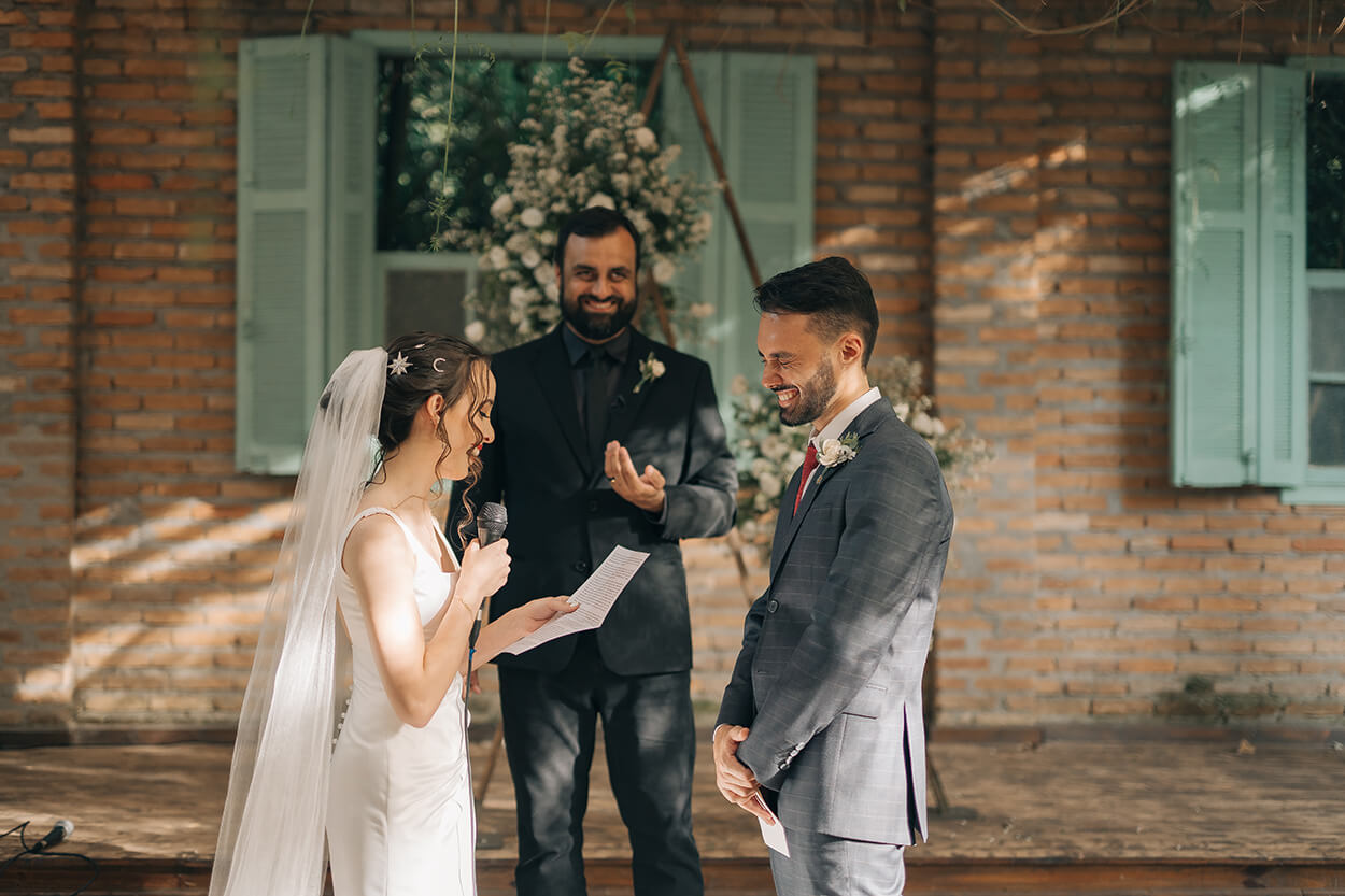 “A melhor parte, com certeza, foi fazer tudo da cerimônia ter um sentido, nada era por acaso: as cores, a bíblia de preparar pregação do meu avô (ele que faria a cerimônia se estivesse vivo), a entrada das alianças com nossos únicos avós vivos…