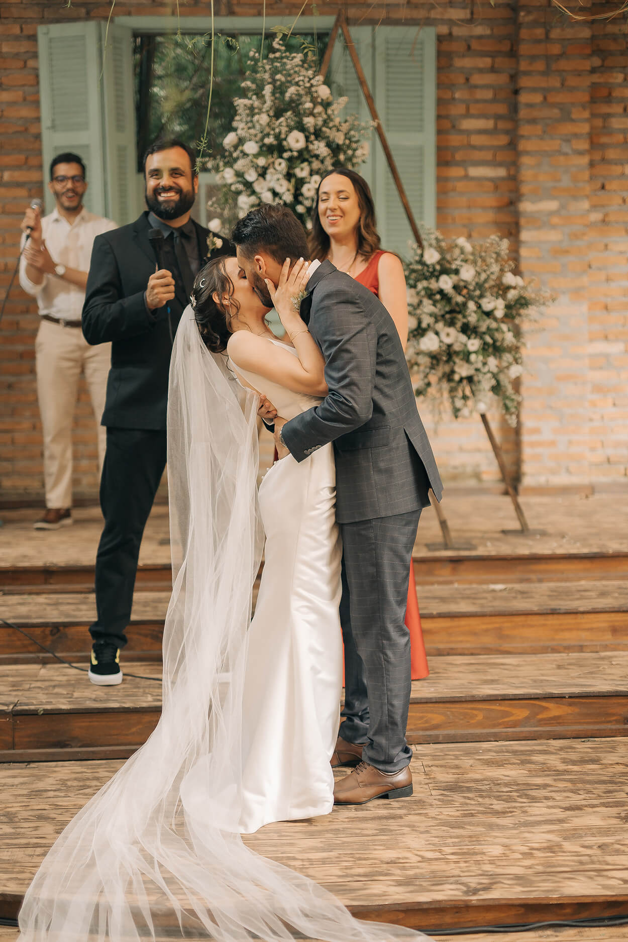 “Acho que quando entramos na festa e vimos tanta gente feliz por nós. Somos muito abençoados com tantos amigos. Eu que não queria festa de casamento fiquei MUITO feliz que meu noivo me ajudou a mudar de ideia.”