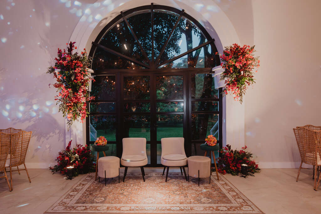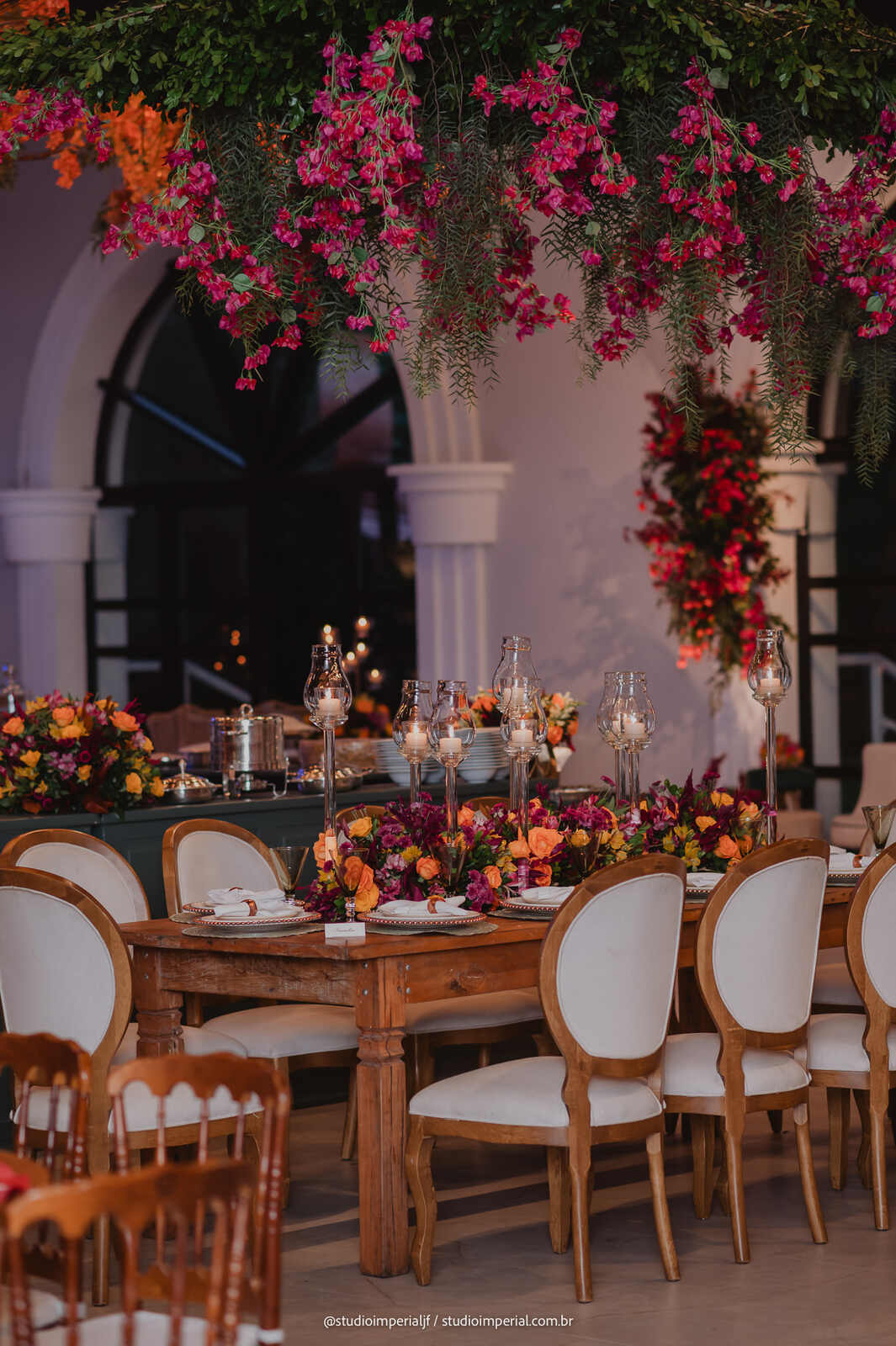 Mas, em várias conversas que eu tive com meu noivo, decidimos ir pela opção de seguir uma paleta vibrante, para que eu, como a noiva vestida de branco, me destacasse na recepção.