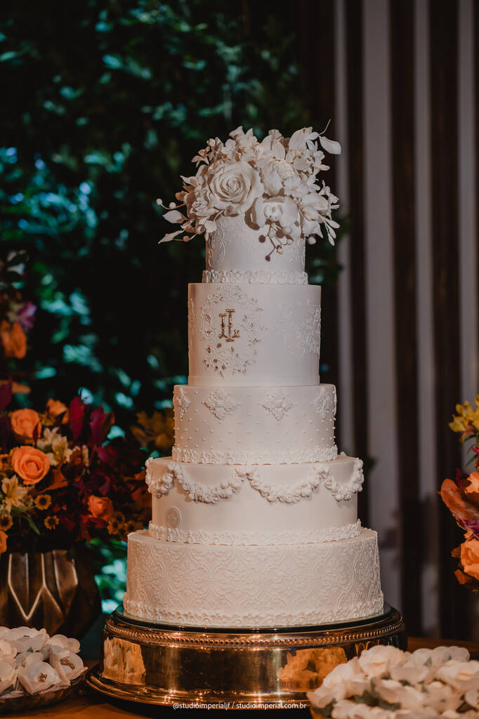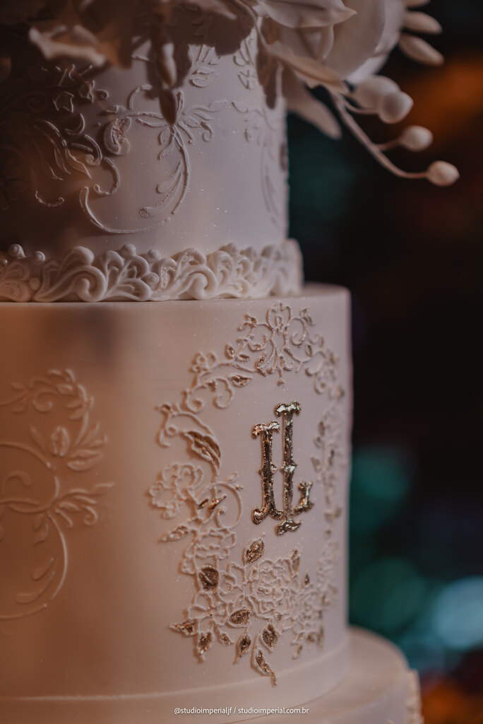 Mesmo assim, deixei os arranjos de flores brancas na igreja, uma vez que ela já é toda ornamentada nas paredes, então deixamos o destaque para a arquitetura.”