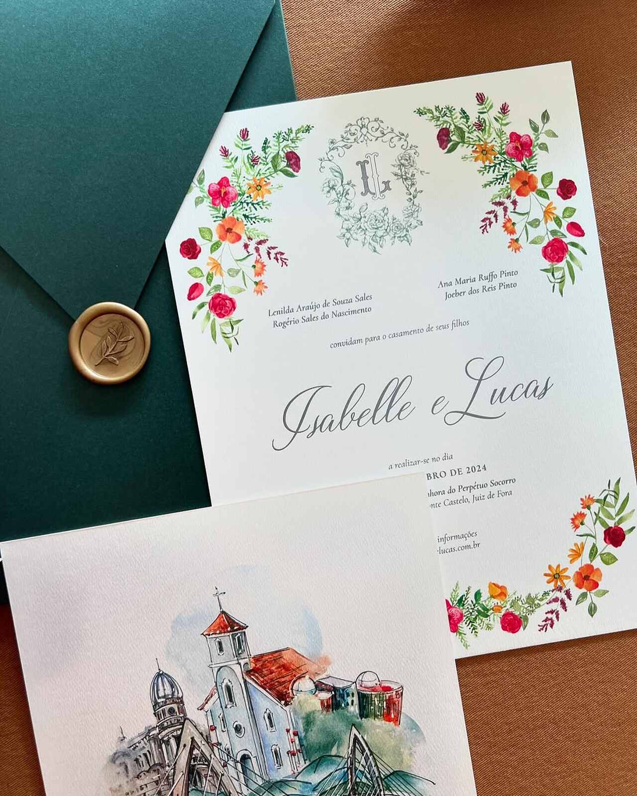 “Sou suspeita pra falar desse convite perfeito”, diz a noiva.