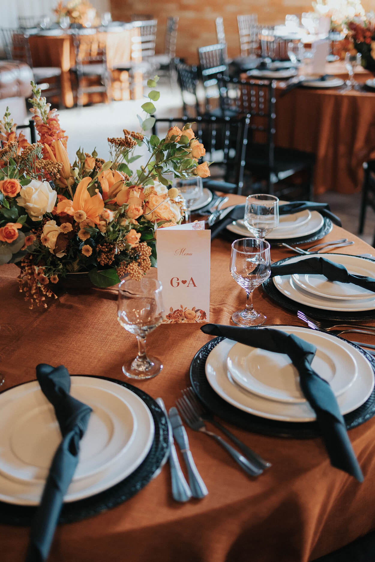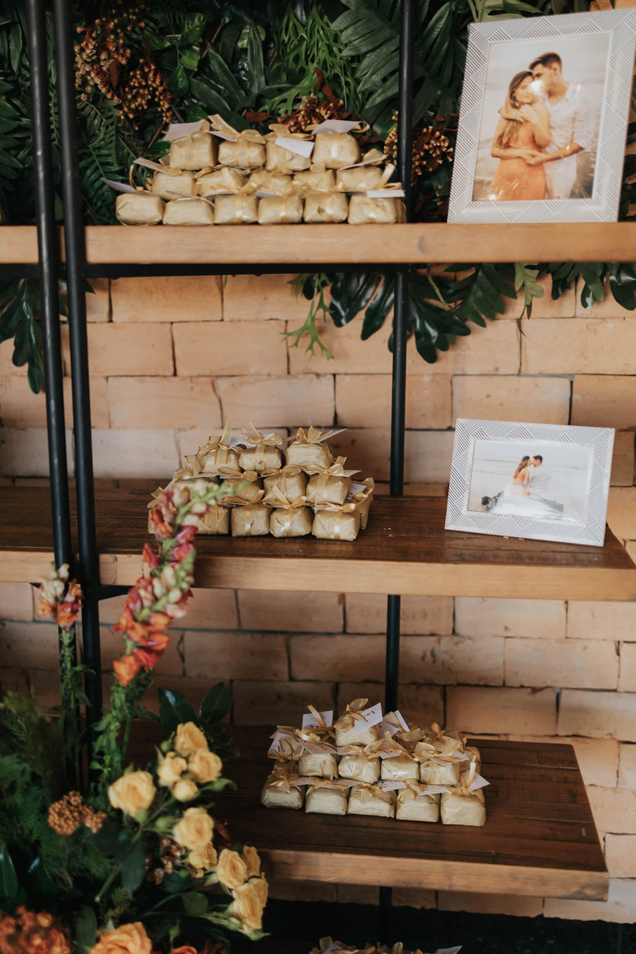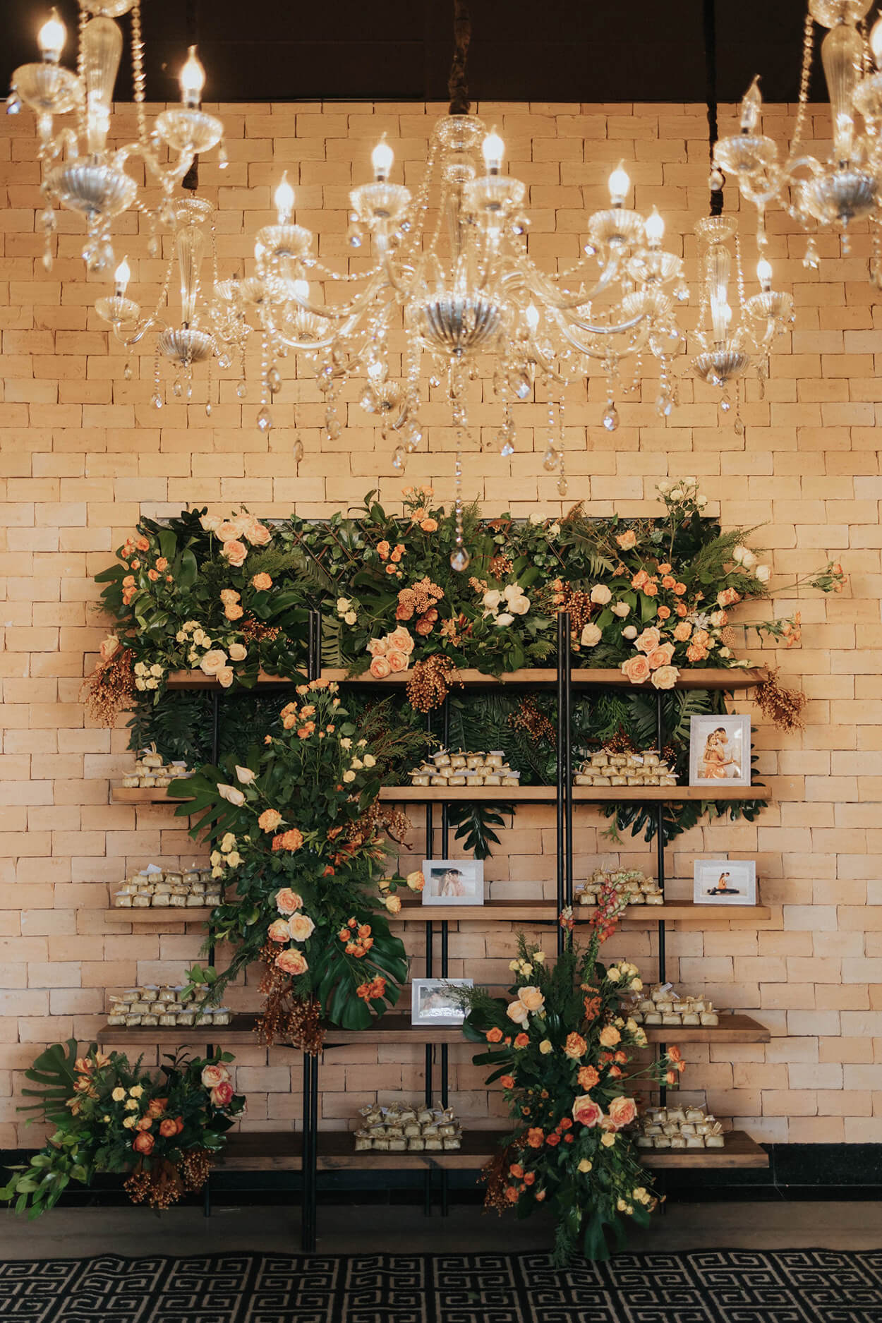Chegou a hora de falar de uma das nossas partes favoritas: a decoração! A festa seguiu o estilo rústico industrial, que segue essa lógica de unir elementos mais simples e até “inacabados”, como a parede de tijolos, com itens mais polidos e despojados.