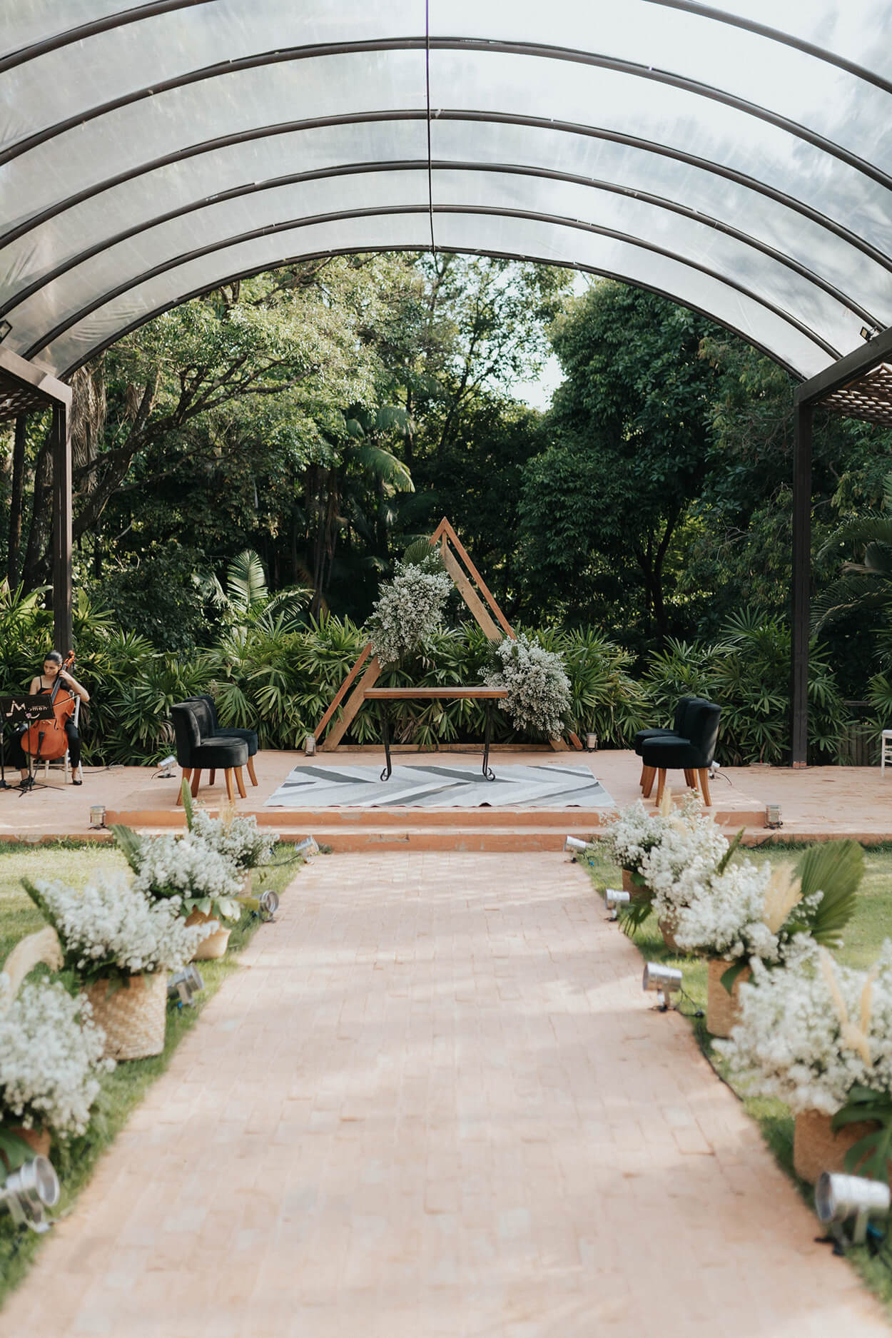 A noiva também teve a oportunidade de espiar a decor antes da cerimônia. “Um dos momentos mais emocionante foi quando vi a decoração e estava tudo como sonhei e quando a decoradora me entregou o buquê.”
