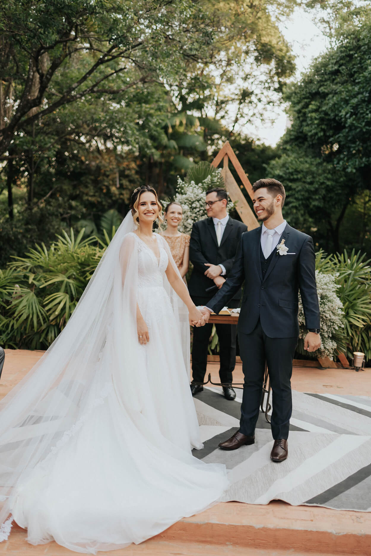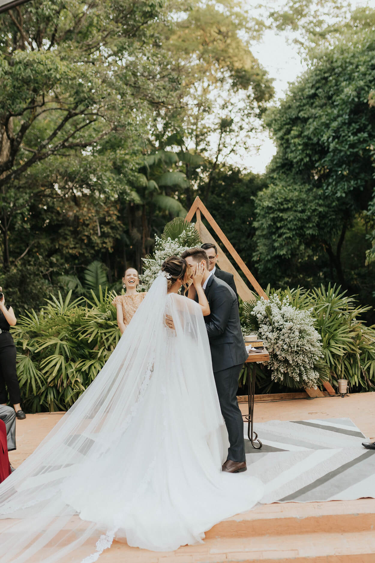 “Me emocionei durante a cerimônia várias vezes. Principalmente com a entrada dos meu avós e a leitura dos meus votos. Esses momentos me marcaram muito. Por fim, o mais inesquecível foram os votos, com certeza. Todo mundo chorou, até os mais “machões”, afinal, teve muita sinceridade e romantismo.”