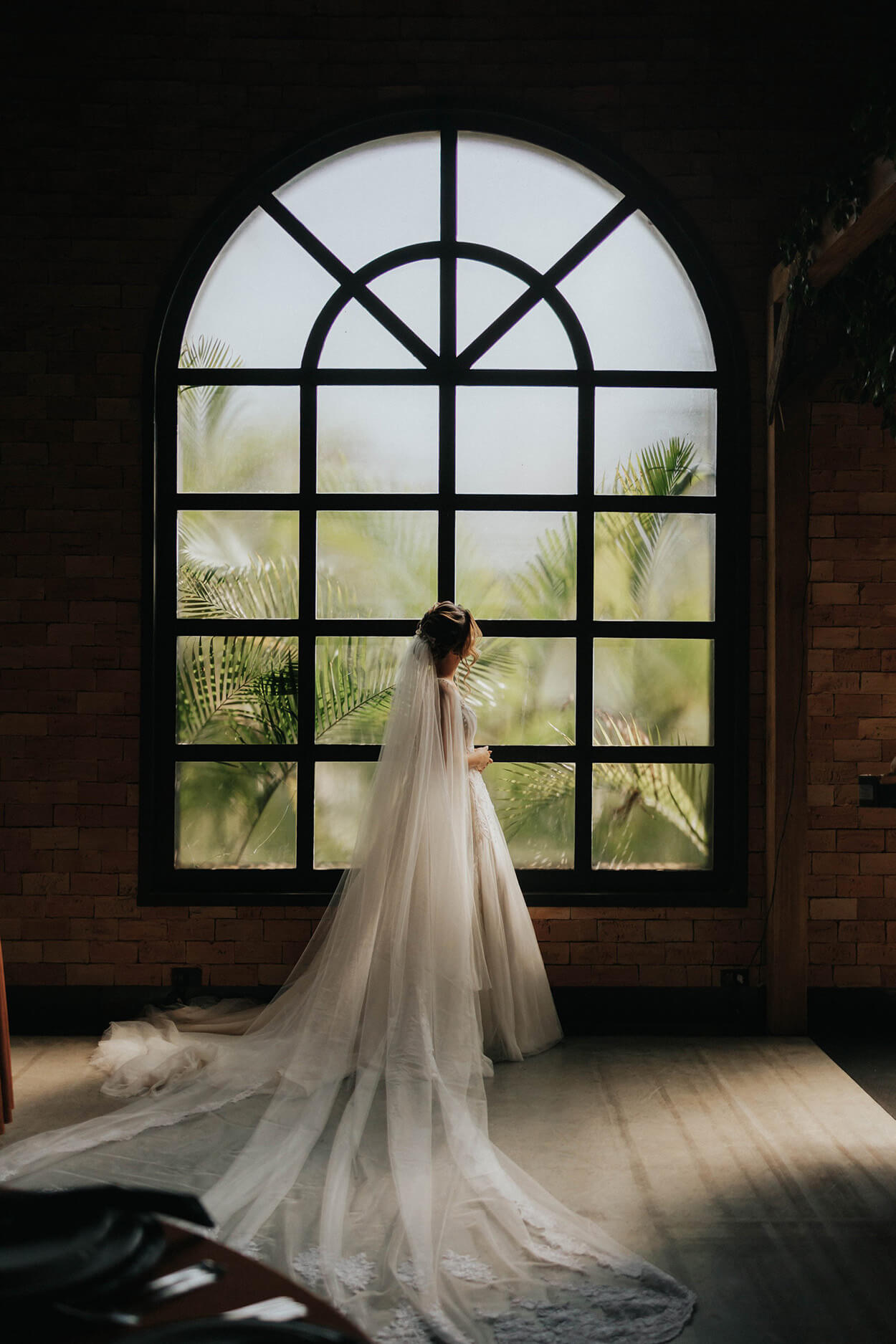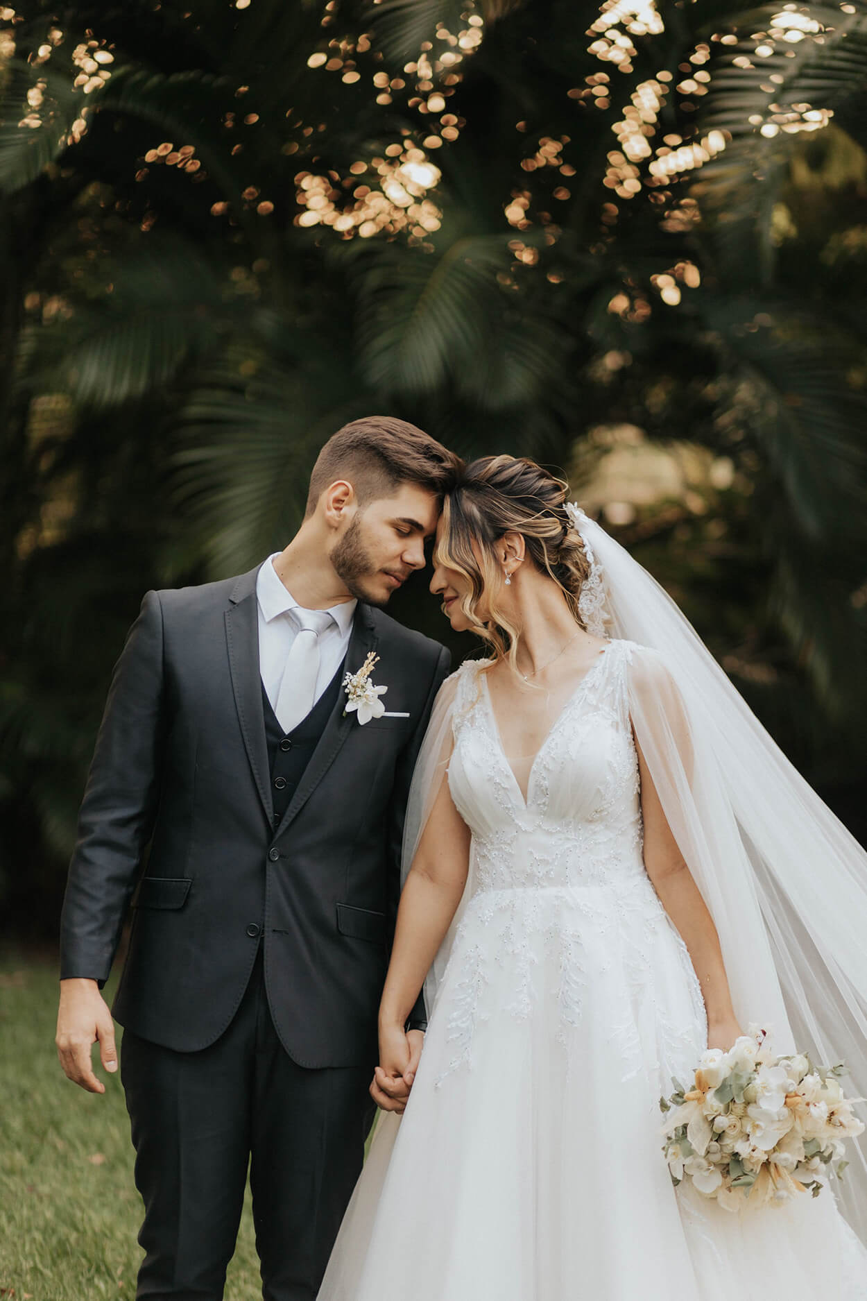 Se tem um jeito de resumir o look da Gabi é: UAU! Para muitas noivas seria um desafio e tanto escolher um vestido que combinasse com a proposta do casamento. Mas ela tirou de letra! O modelo tem esse ar romântico e esvoaçante, mas a capa trouxe aquela ousadia que faltava para selar o look.