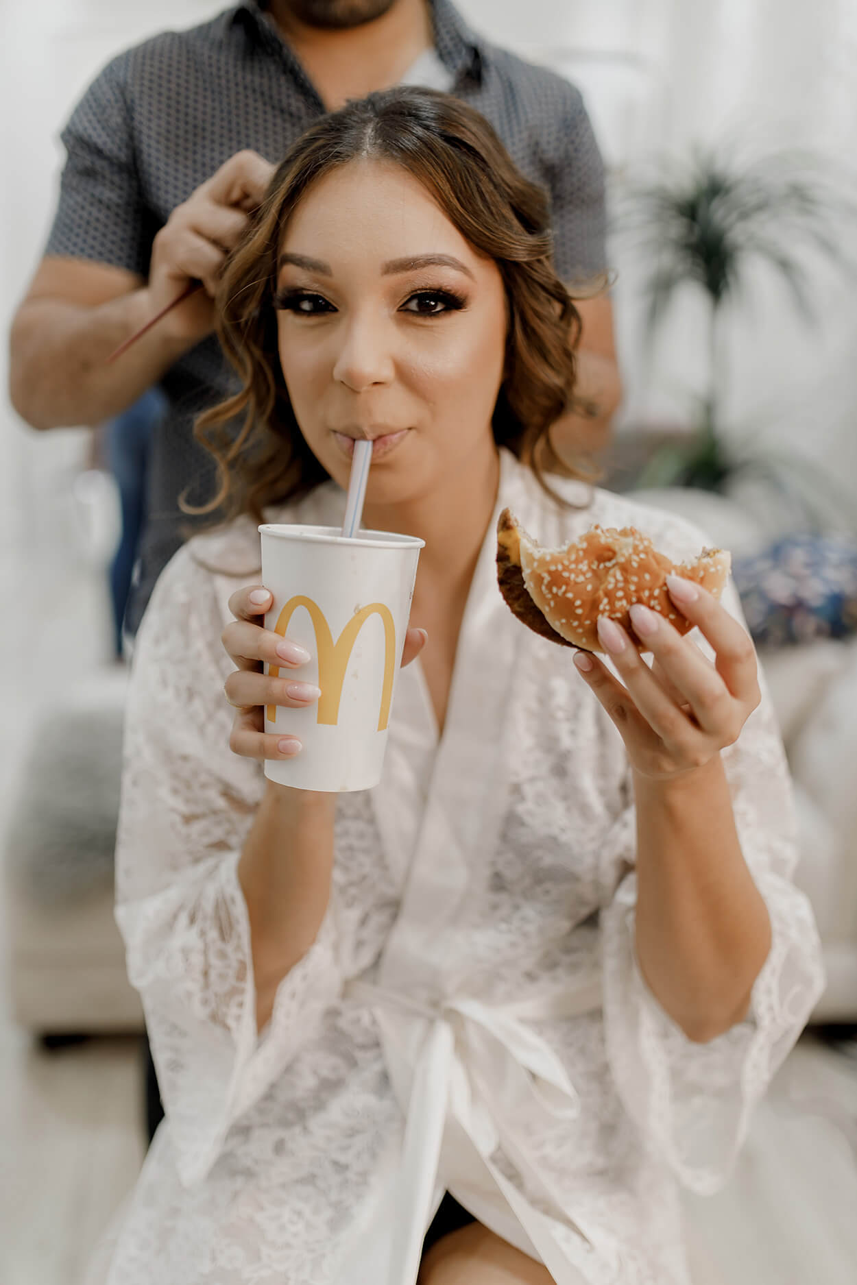 Para tudo! Que noiva maravilhosa! A Anne realmente curtiu o seu making off e fez até uma pausa para o lanche, rs. A noiva contou com a consultoria para criar esse vestido que esbanja movimento e romantismo.