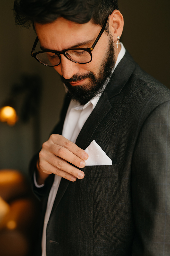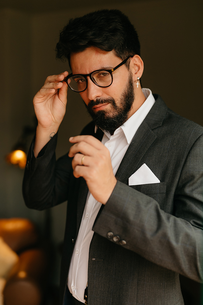 Um terno elegante da For Jack que combina com qualquer ocasião foi a escolha do Iury para o seu visual. Para complementar o look, ele usou suspensório e lenço d’O Frances Gravataria.