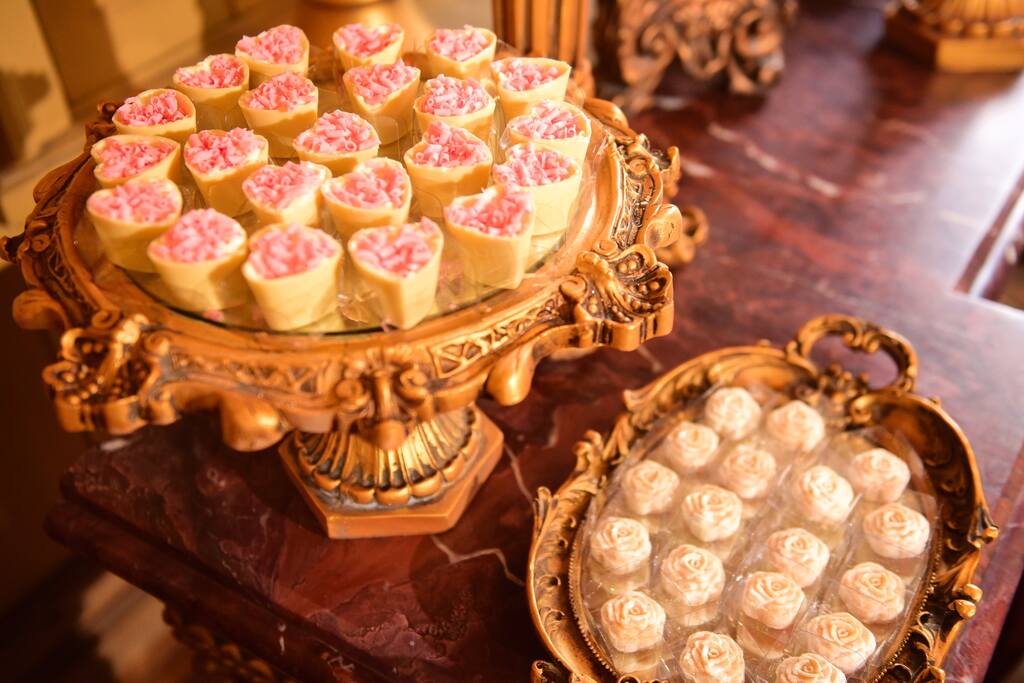 O estilo do grande dia é claramente clássico, mas também ganhou um toque romântico com a paleta com rosa claro, peach fuzz, dourado para madrinhas e vermelho para as mães.