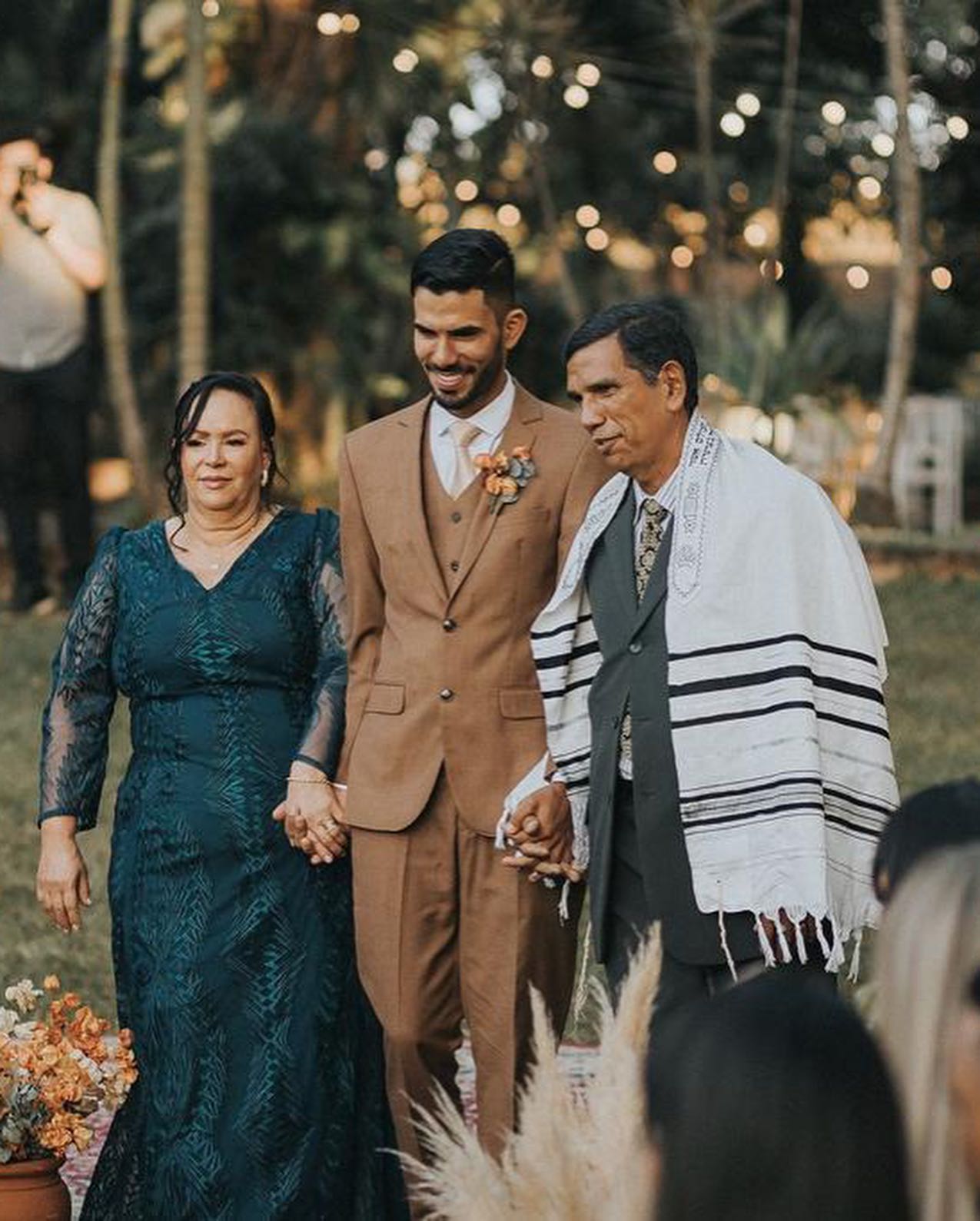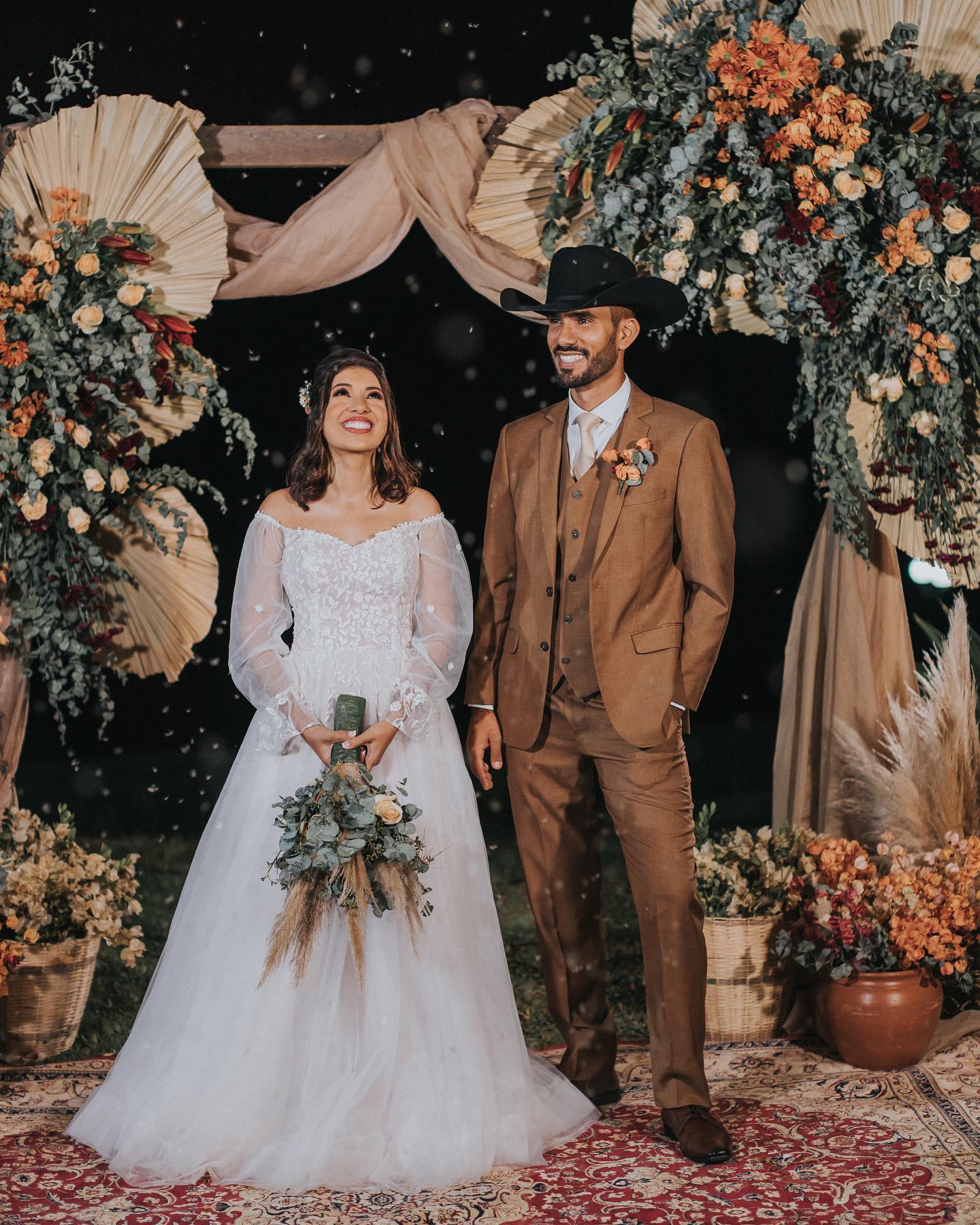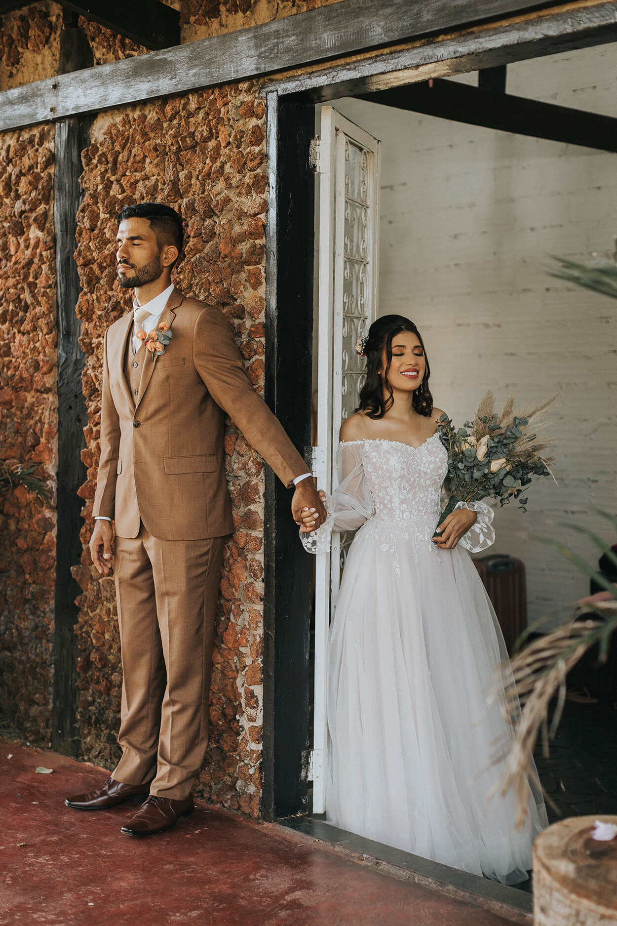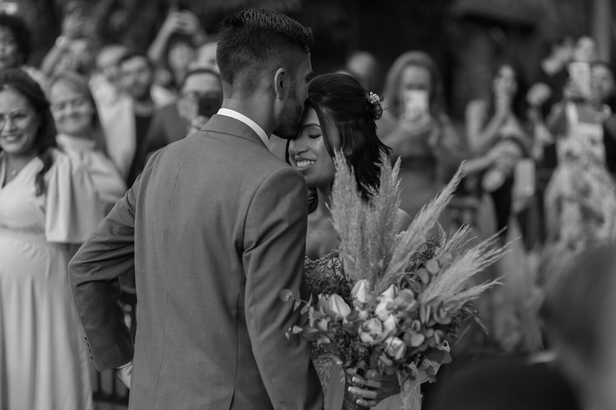 Nem todo casal religioso precisa se casar na igreja. Ambos estavam muito decididos: queriam muito mais do que uma festa bonita. Cada detalhe da decor precisava expressar a sua fé e a gratidão por vivenciar aquele momento. O noivo também foi capturado pelas emoções e depois contou que entrou com a pessoa que ele mais admira no mundo: o seu pai.