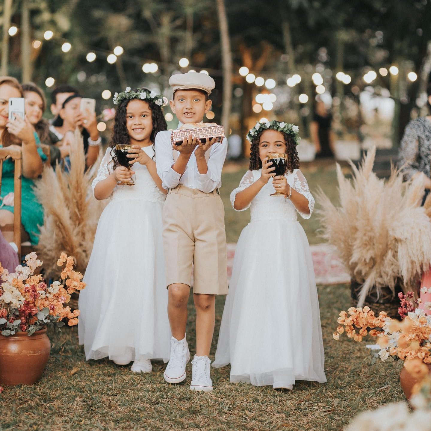 Outro momento que encheu a noiva de alegria foi a entrada das crianças. “Acompanhei o crescimento dos três e foi um sentimento muito especial receber a “ceia” por quem me representa tanta pureza.”
