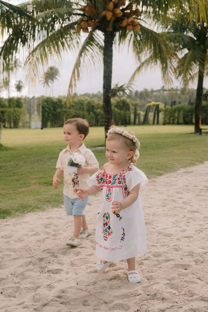 Os trajes do pajem e das daminhas eram todos típicos do México (que é uma paixão minha), com bordados coloridos, feitos à mão por uma estilista mexicana.