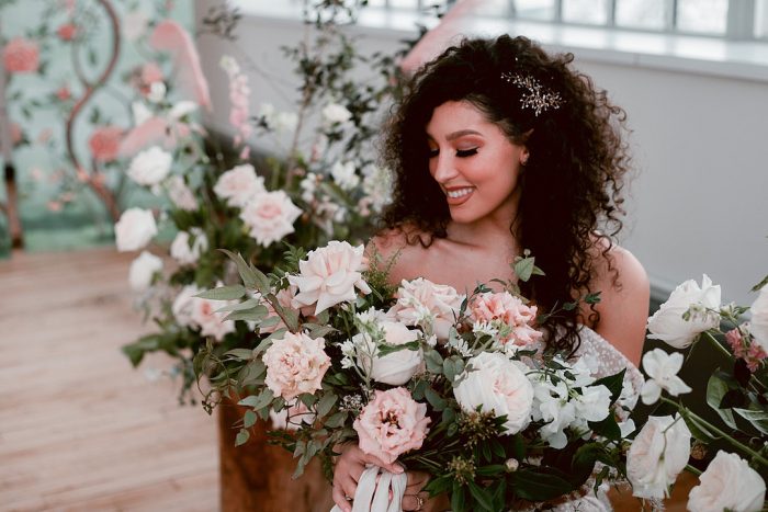 O penteado para casamento cacheado pode ficar ainda mais lindo com a ajuda dos acessórios. Seja uma grinalda, coroa ou aplicações de flores, presilhas e grampos com pérolas. Sendo assim, uma coisa é fato: apostar nos acessórios é o jeito mais fácil de deixar o visual poderoso e marcante.