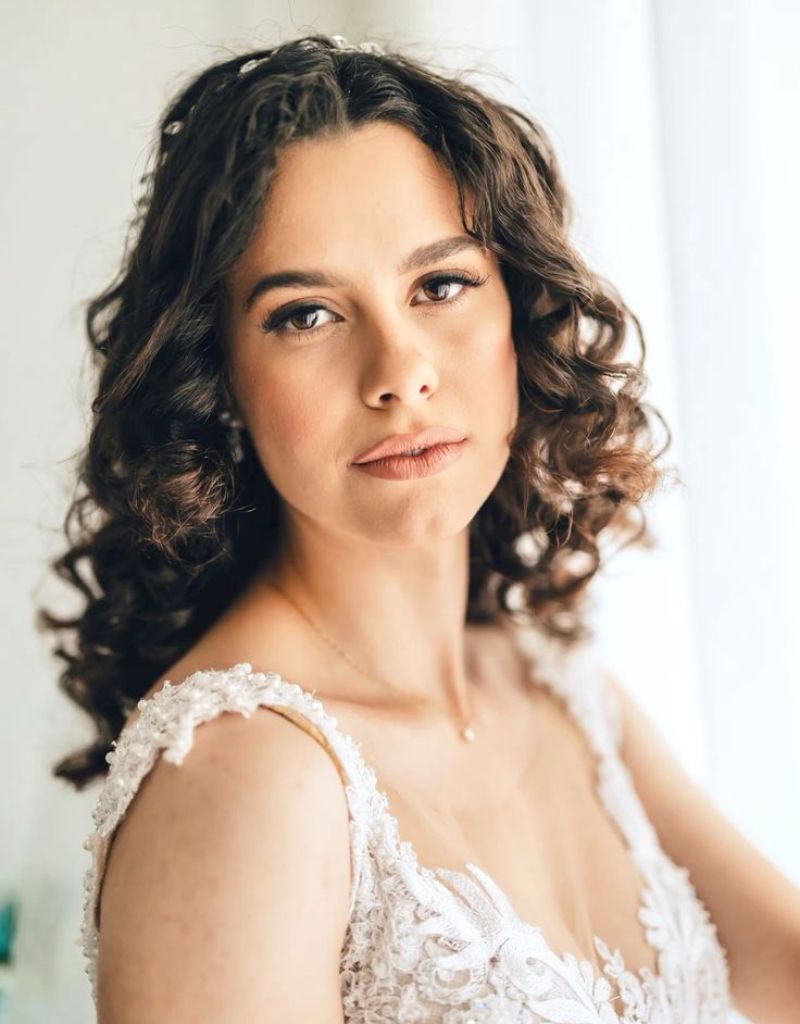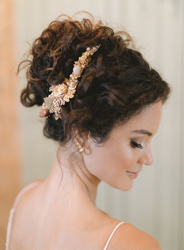 O penteado para casamento cacheado pode ficar ainda mais lindo com a ajuda dos acessórios. Seja uma grinalda, coroa ou aplicações de flores, presilhas e grampos com pérolas. Sendo assim, uma coisa é fato: apostar nos acessórios é o jeito mais fácil de deixar o visual poderoso e marcante.