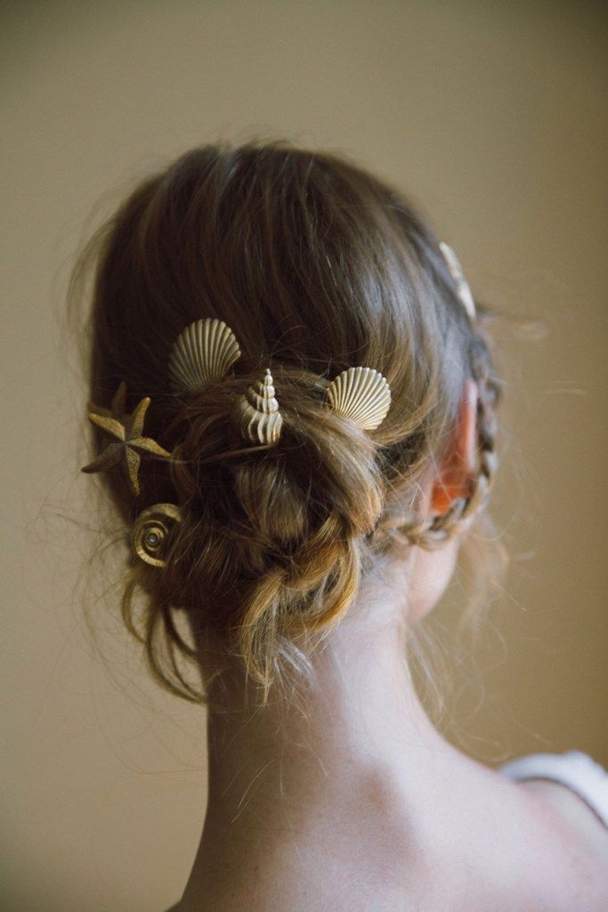 Para esse ambiente, dependendo do estilo do evento, você pode apostar em acessórios que remetam ao mar como conchas, pérolas e estrelas-do-mar de maneira delicada para compor seu penteado.