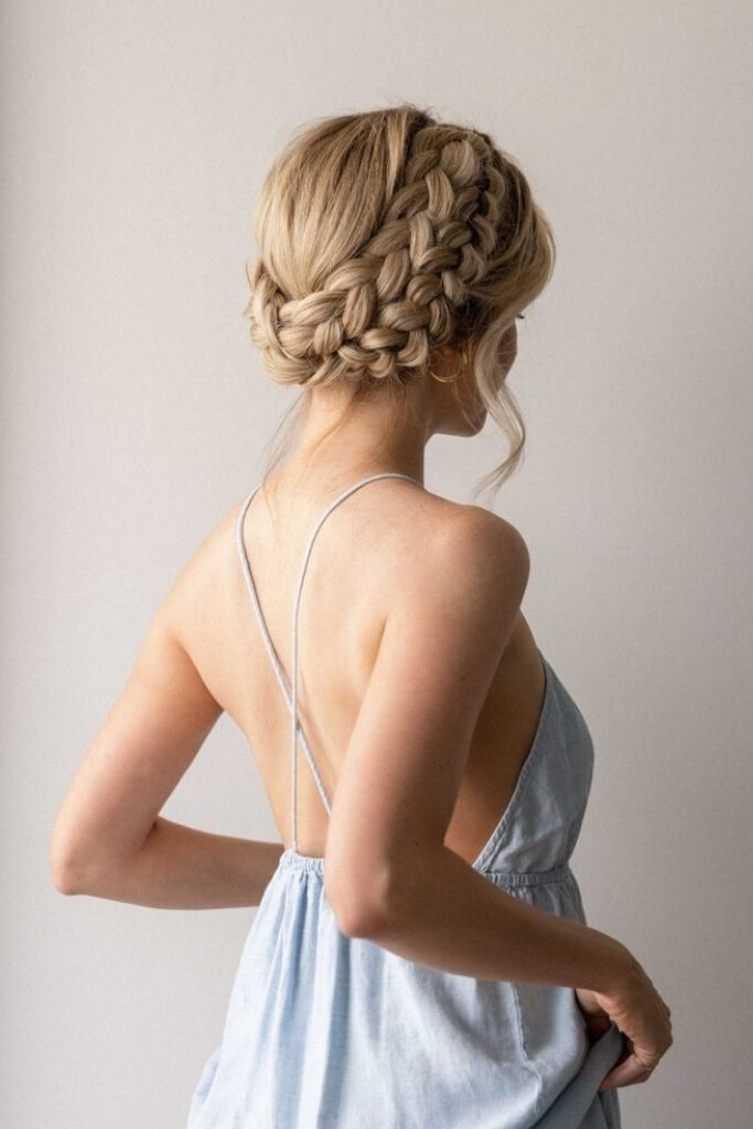 Coques baixos ou tranças elegantes são opções bacanas, pois não sobrecarregam o visual e mantém o cabelo no lugar. Os cabelos soltos com ondas naturais também são uma ótima pedida.