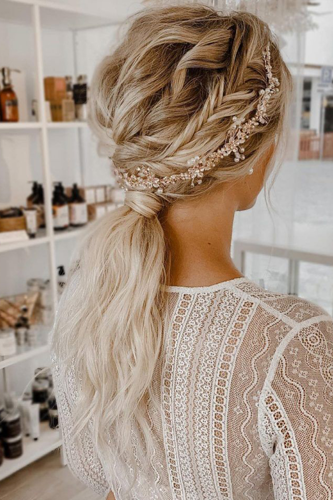 Tiara de trança como penteado para casamento no campo