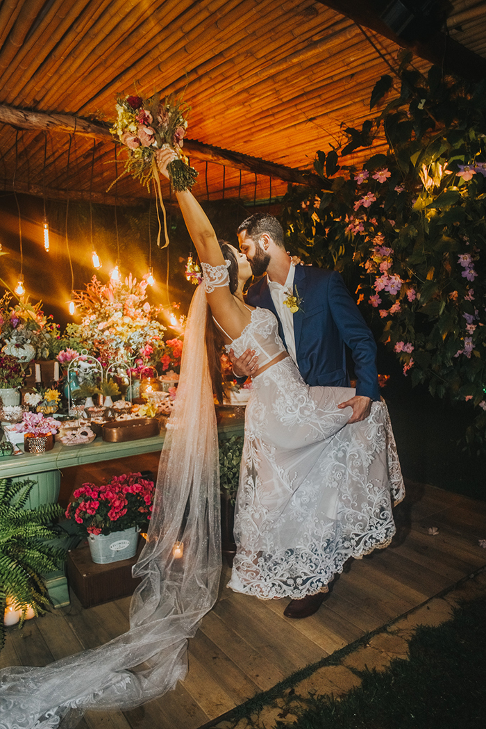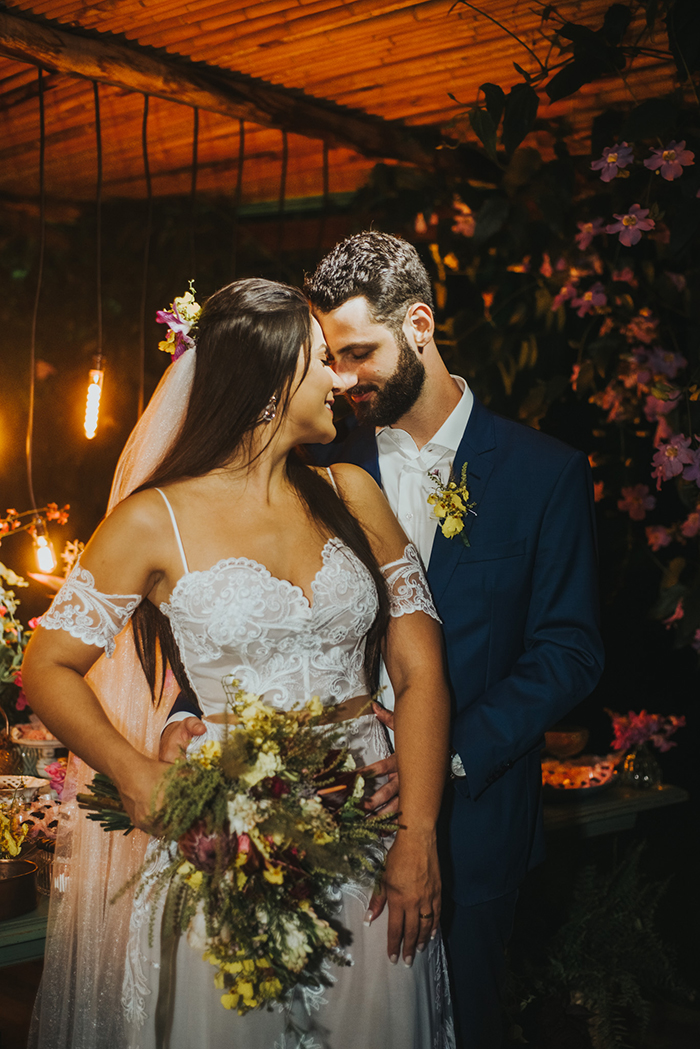 Tudo o que sonhavam era começar uma nova fase no meio de muito verde, em um lindo pôr do sol. E assim foi. Para ajudar a realizar esses desejos tão íntimos, eles contaram com a ajuda da Curaçao Decorações, que deixou o espaço inesquecível e com aquela vibe rústica que tanto amamos.