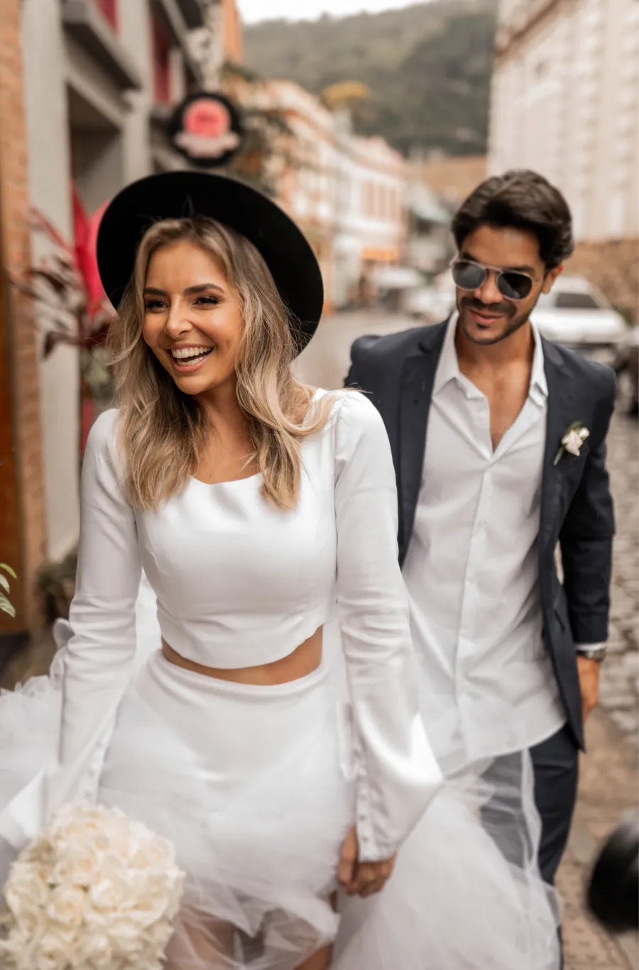 Kássia e Gabriel não queriam algo super-romântico e no campo, e sim o cenário urbano com seu alto astral.