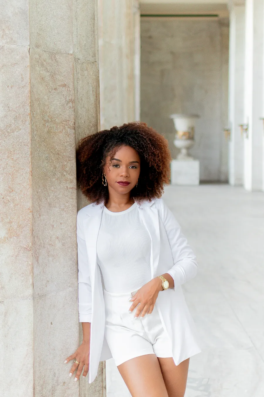 A Evelyn, por exemplo, optou por um blazer, conjuntinho branco, relógio e um brinco moderno.